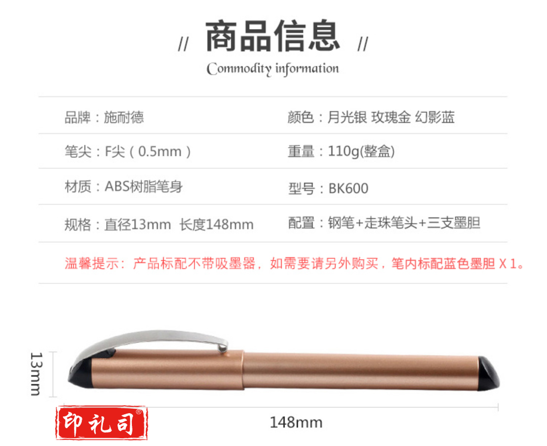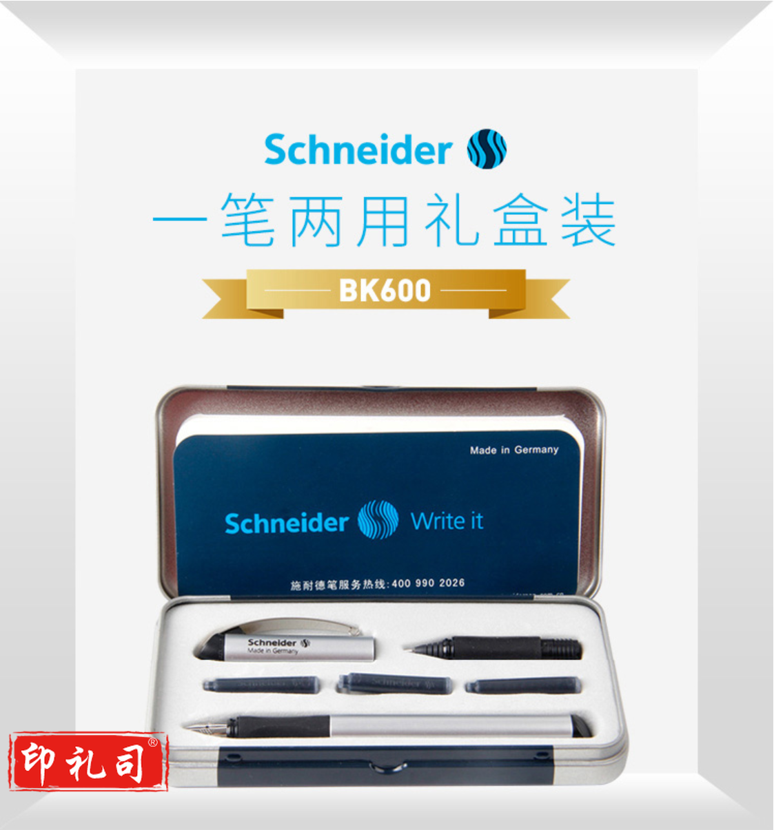 施耐德(Schneider) 德国进口钢笔 练字套装双笔头钢笔+走珠笔两用BK600玫瑰金