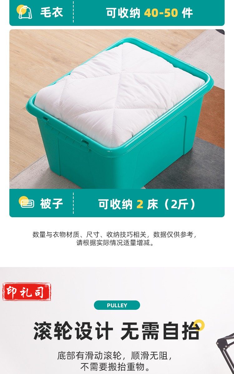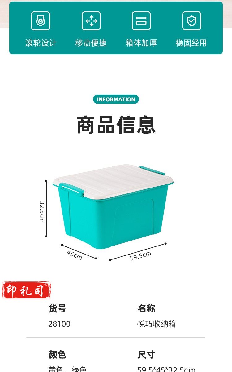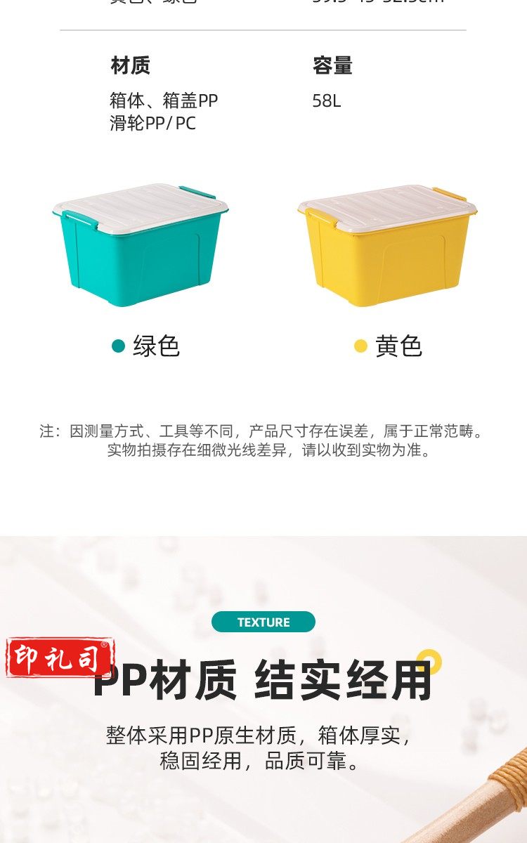 茶花(CHAHUA)茶花塑料收纳箱58L升*2个彩色带滚轮整理箱大号储物箱 58L*2 28100