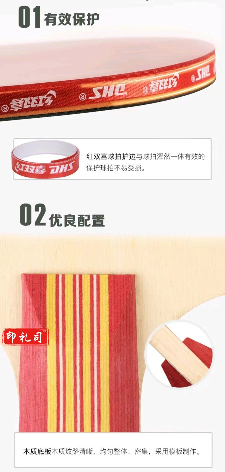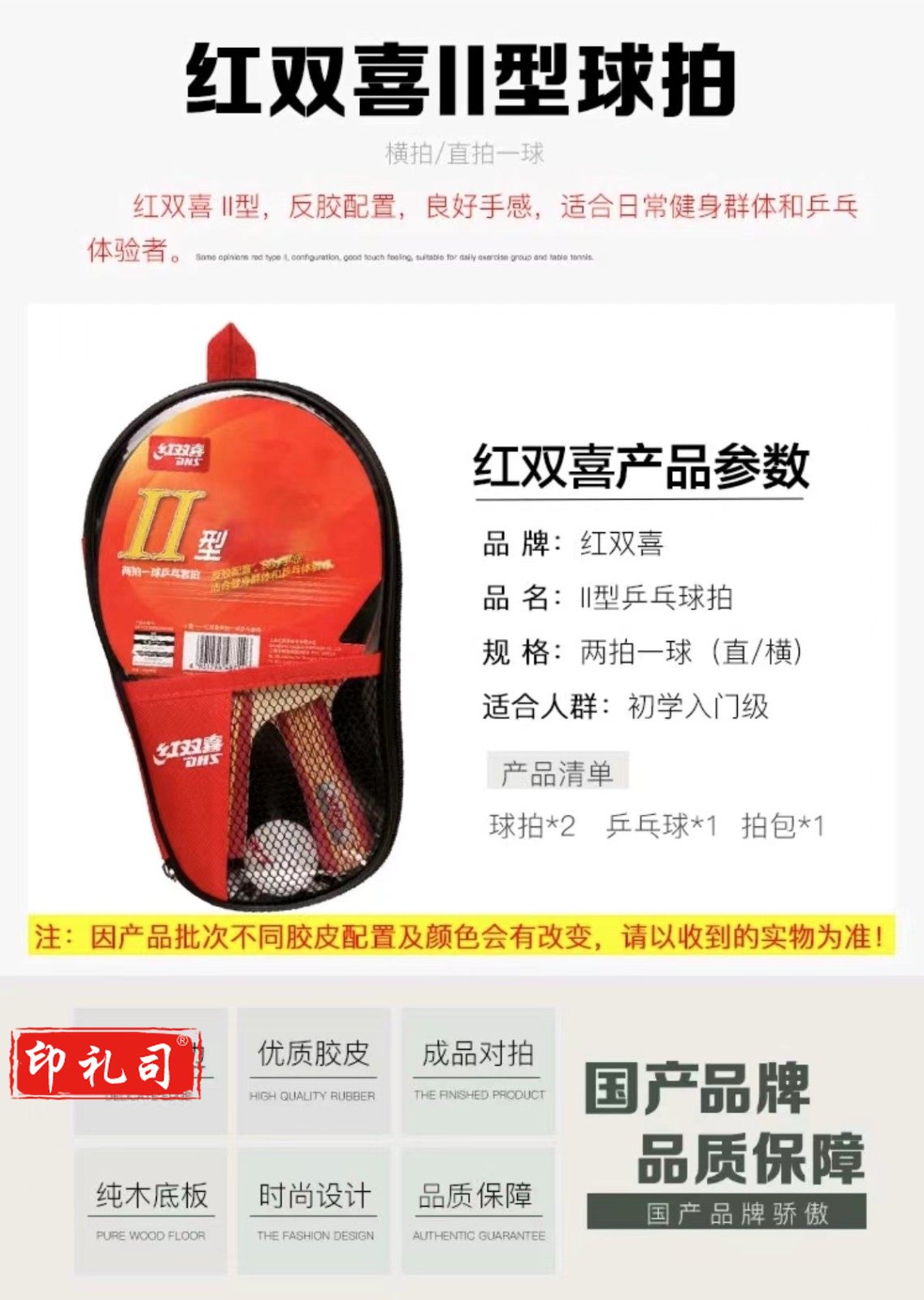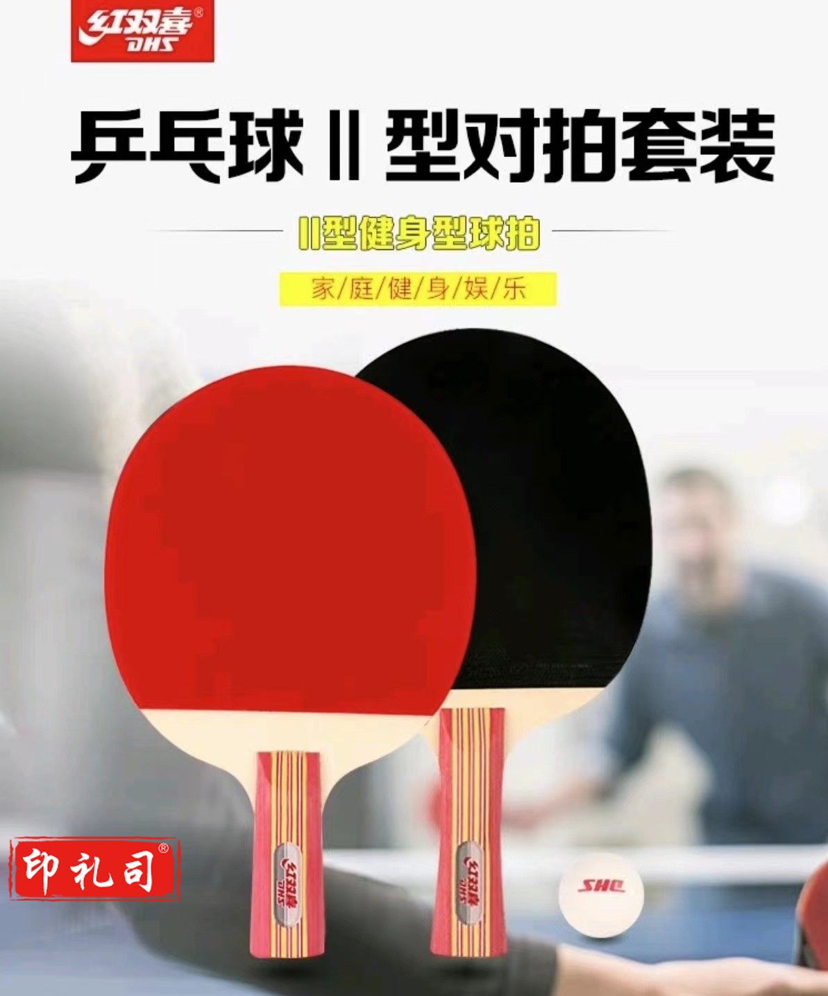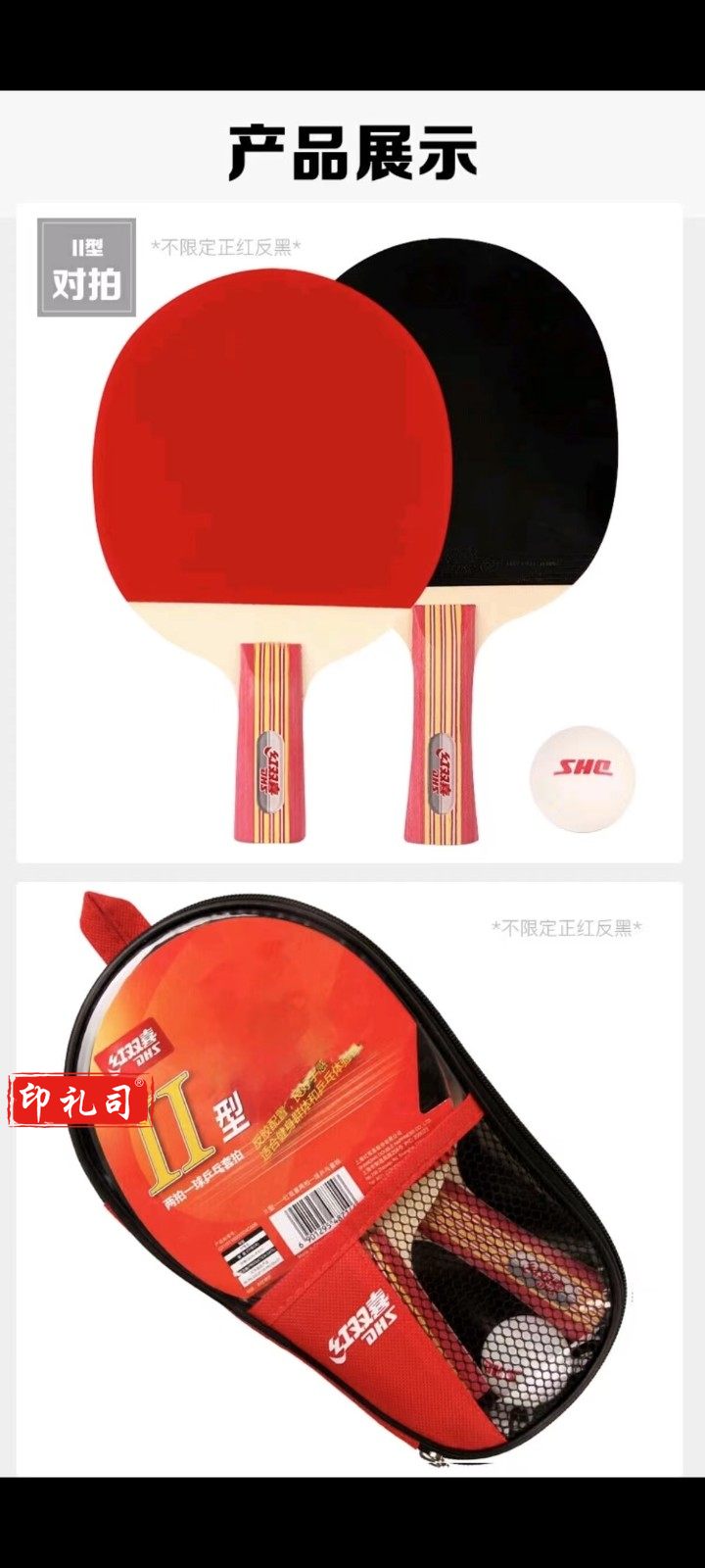 红双喜乒乓球拍横直拍套装2拍