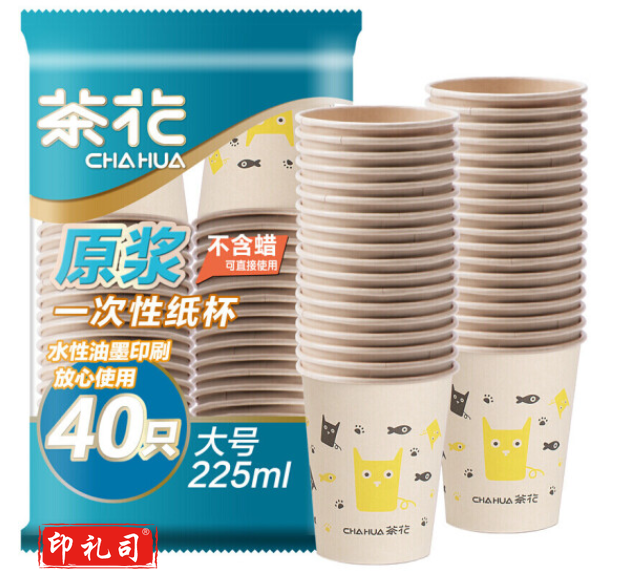 茶花 纸杯一次性杯子原浆水杯40只装大号225ML