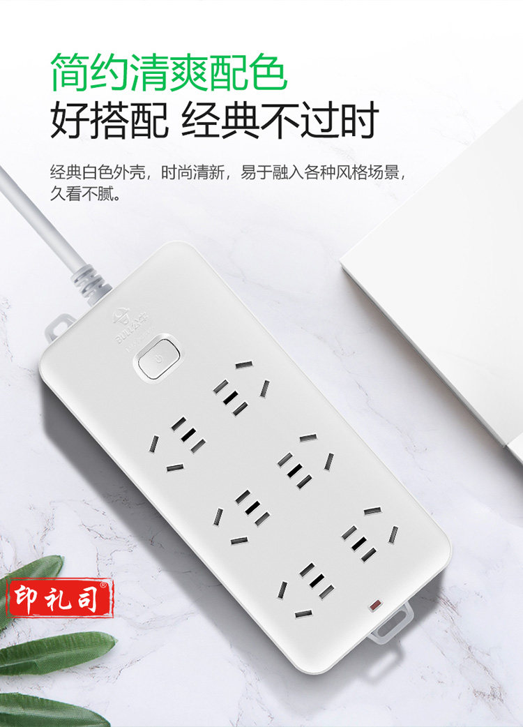 公牛(BULL) 新国标插座/插线板/插排/排插/接线板/拖线板 GN-109K 6位总控全长5米