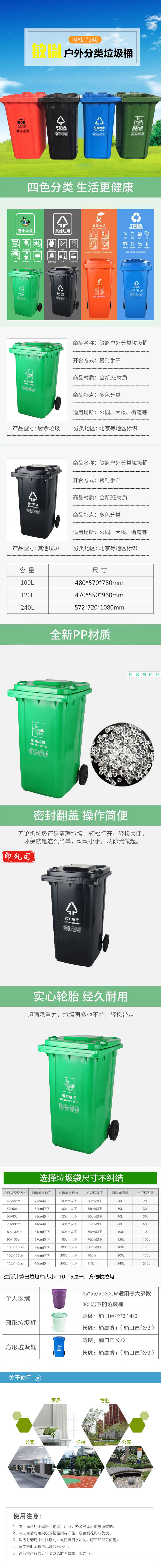 敏胤 户外240L 分类其它垃圾标识垃圾桶(挂车带轮)北京等地区版 MYL-7240(其它垃圾—黑灰色)