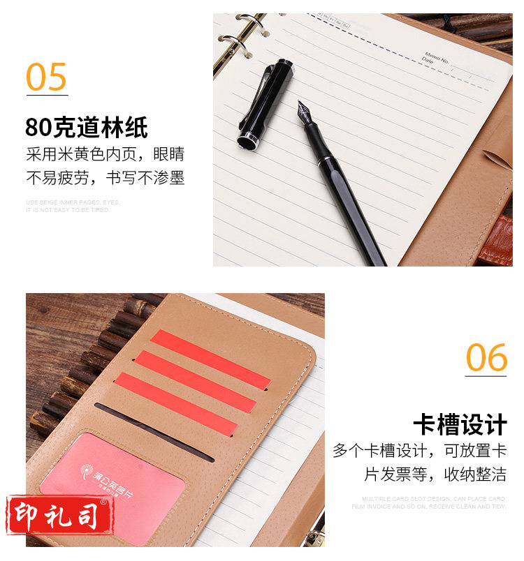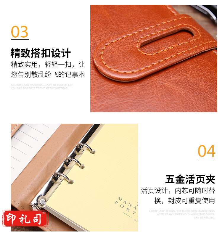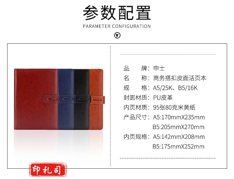 申士(SHEN SHI) B5/16K 9孔商务活页皮面本 办公记事笔记本子 黑色