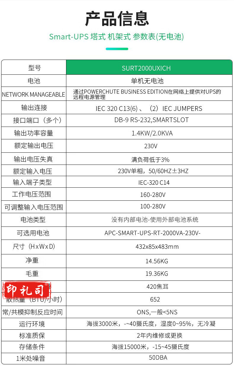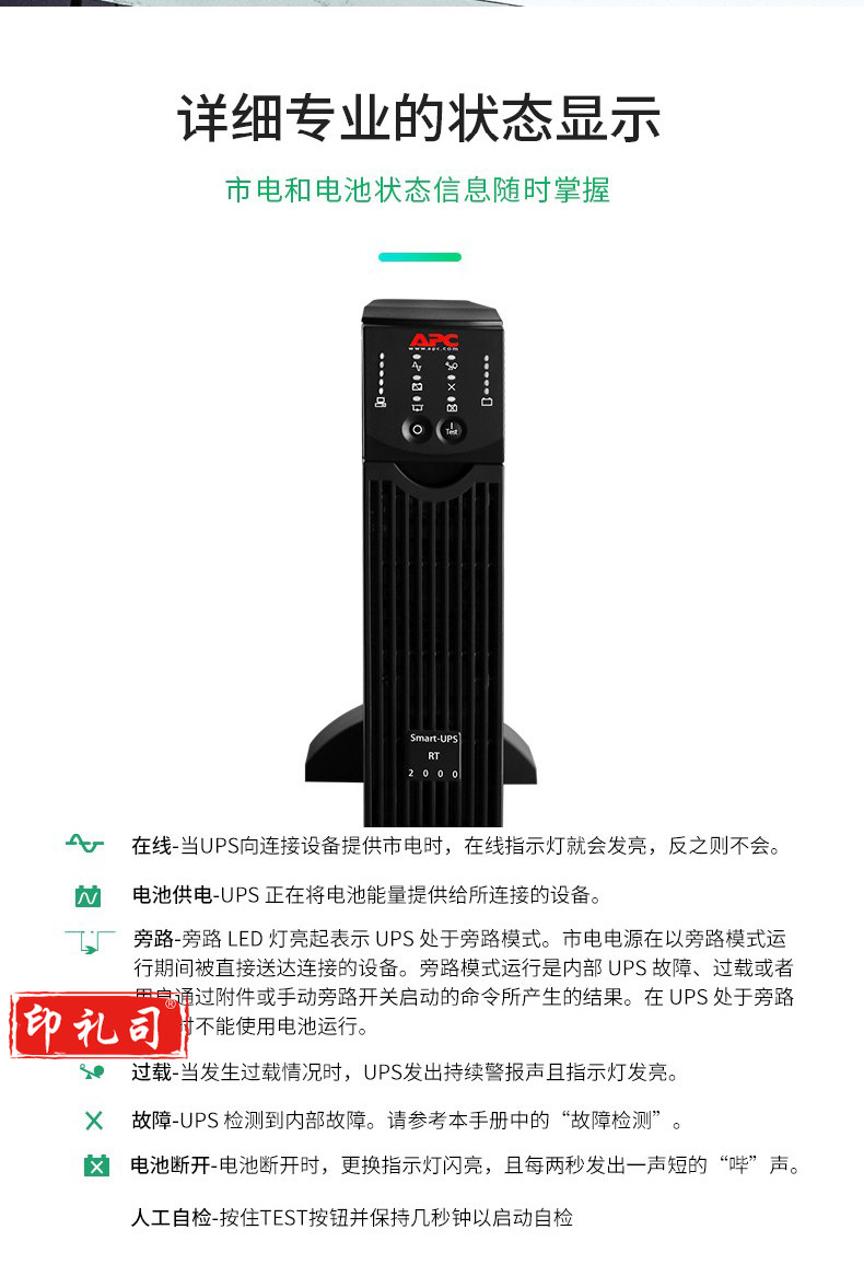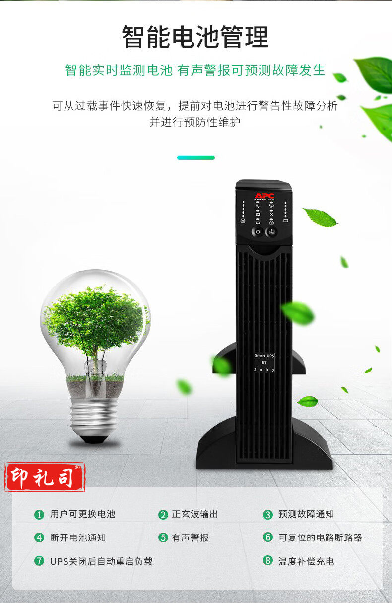 【APCSURT2000UXI-CH】APC SURT2000UXI-CH 1800W/2000VA企业级机房应急电源纯在线式UPS不间断电源SURT2000UXICH升级替代款