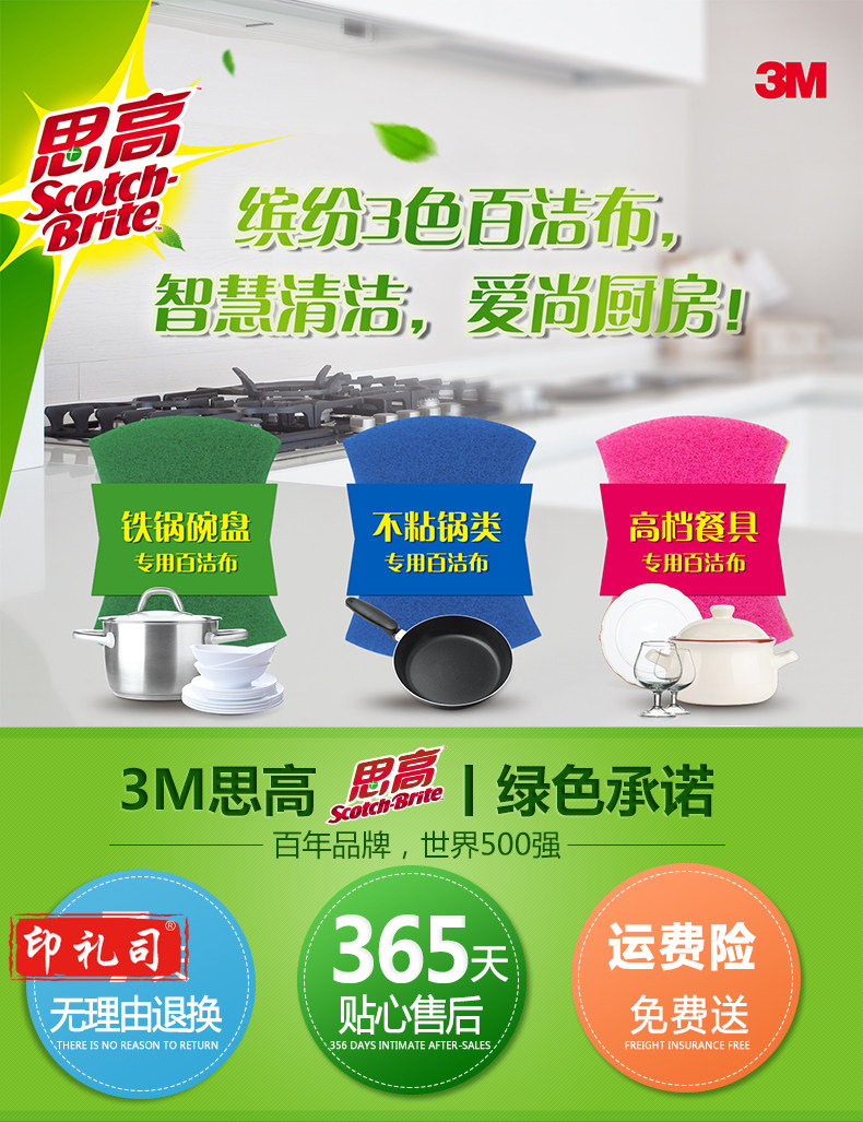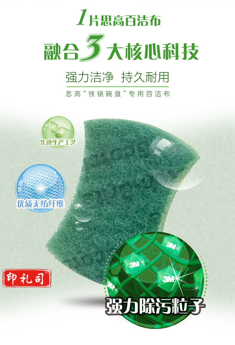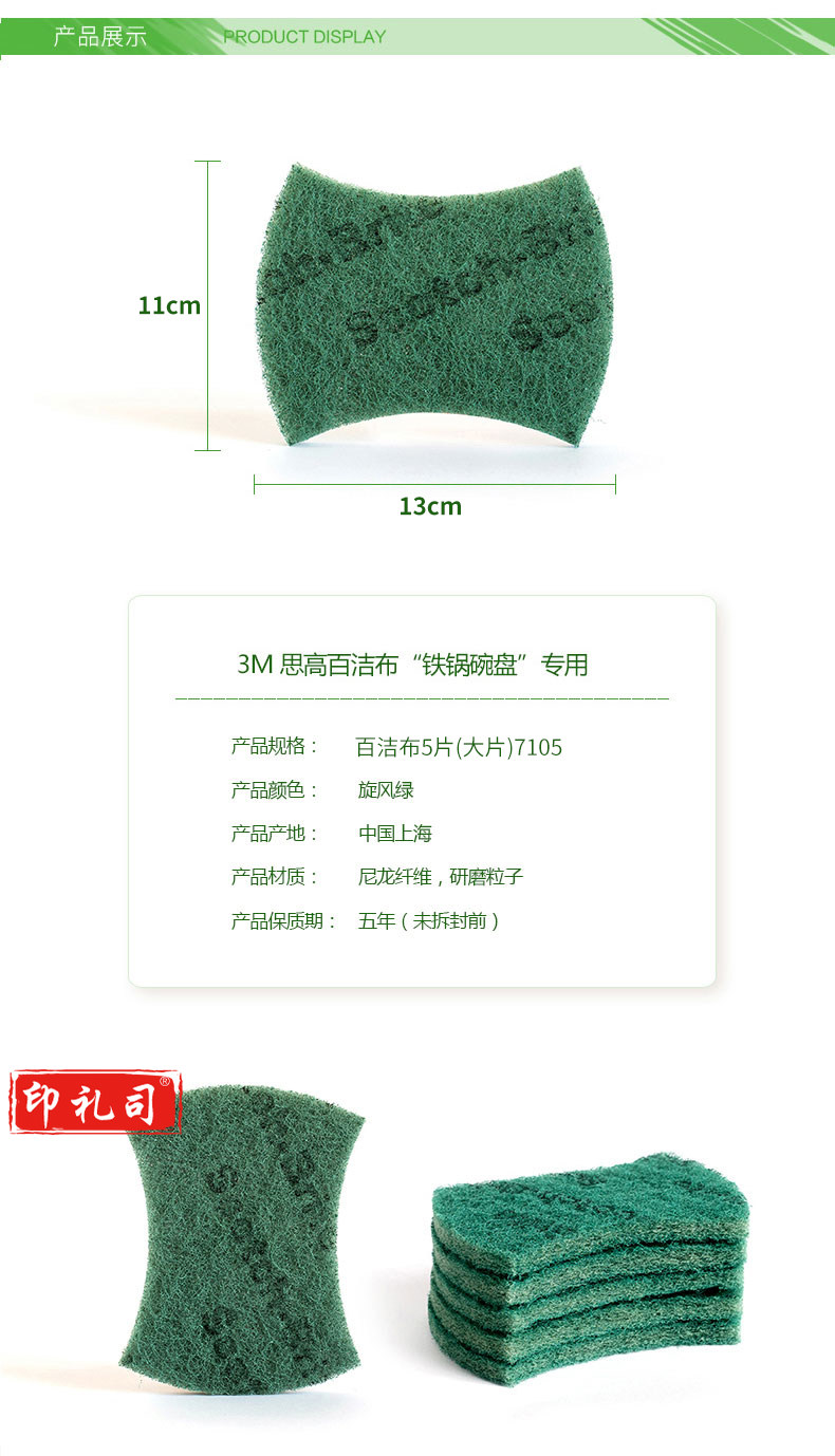 3M思高铁锅碗盘专用百洁布5片装厨房洗碗刷锅去污耐用洗碗布大片 绿色