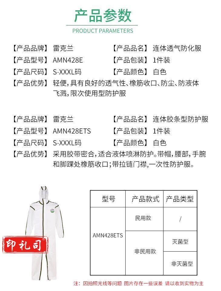 雷克兰 耐酸碱防尘连体防化服身体防护