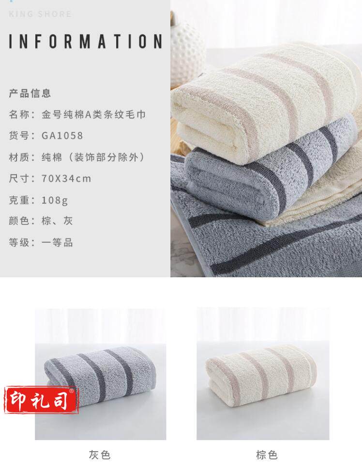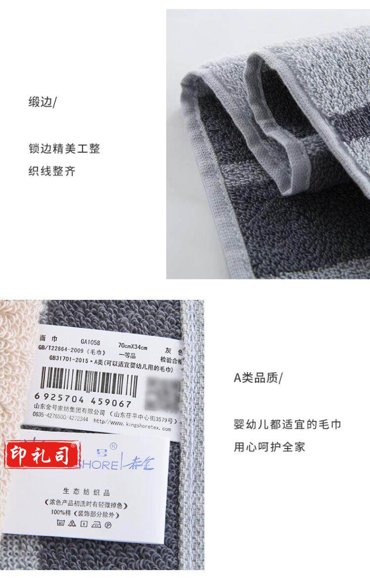 金号纯棉毛巾 厚实吸水耐用 70*34CM 108克 GA1058 灰色