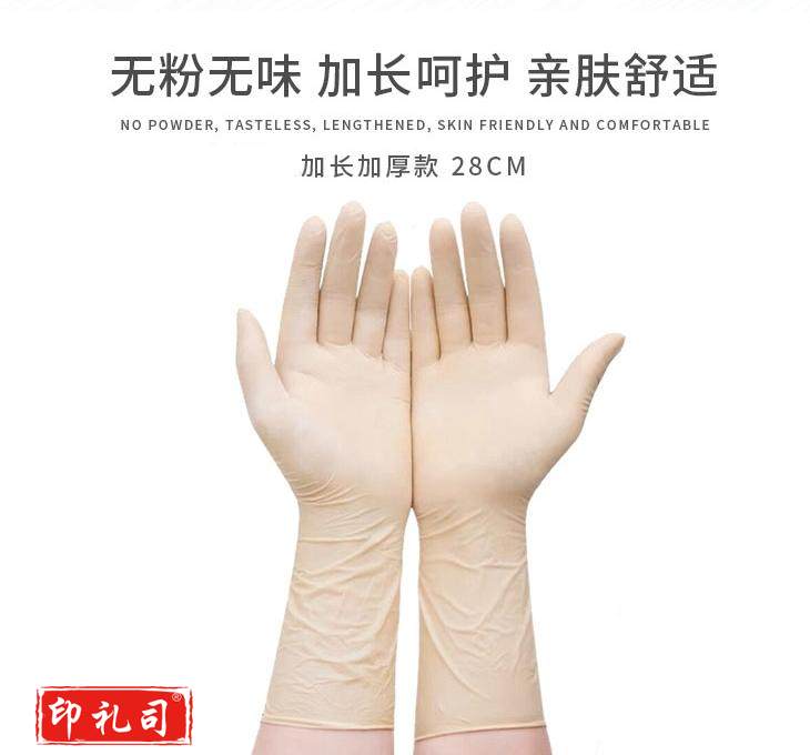 光明 加长加厚无粉羊毛脂乳胶手套 12寸手部防护