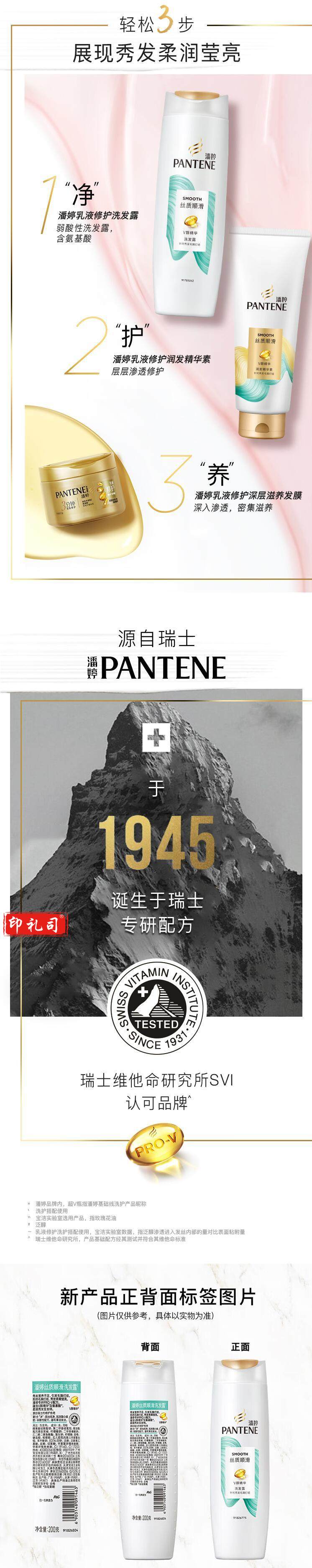潘婷氨基酸丝质顺滑洗发水200g肥(香)皂和合成洗涤剂
