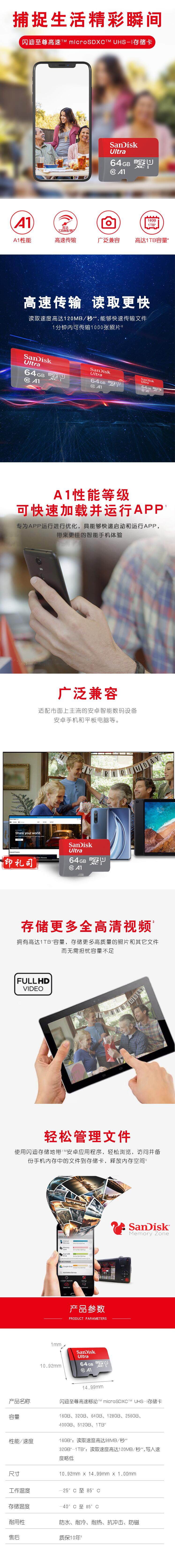 闪迪(SanDisk)64GB TF(MicroSD)存储卡 U1 C10 A1 至尊高速移动版内存卡 读速120MB/s APP运行更流畅 jcyd-20201107564