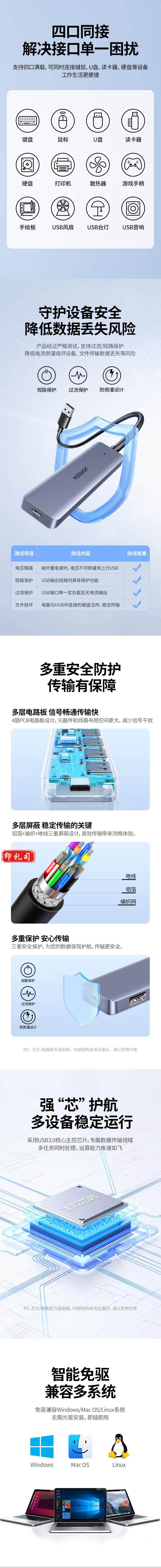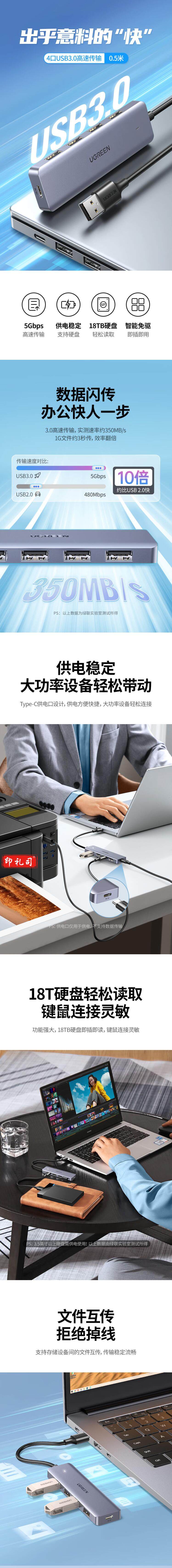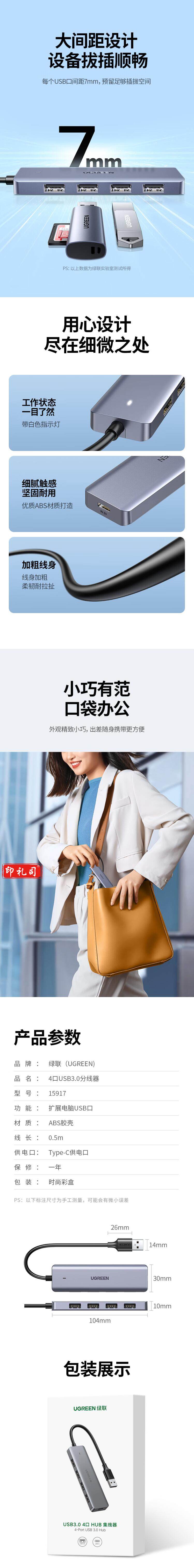 绿联15917 USB3.0分线器扩展坞 高速4口集线器 HUB拓展坞 笔记本电脑一拖多接口转换器转接头延长线带供电口 0.5米 jcyd-241024014724