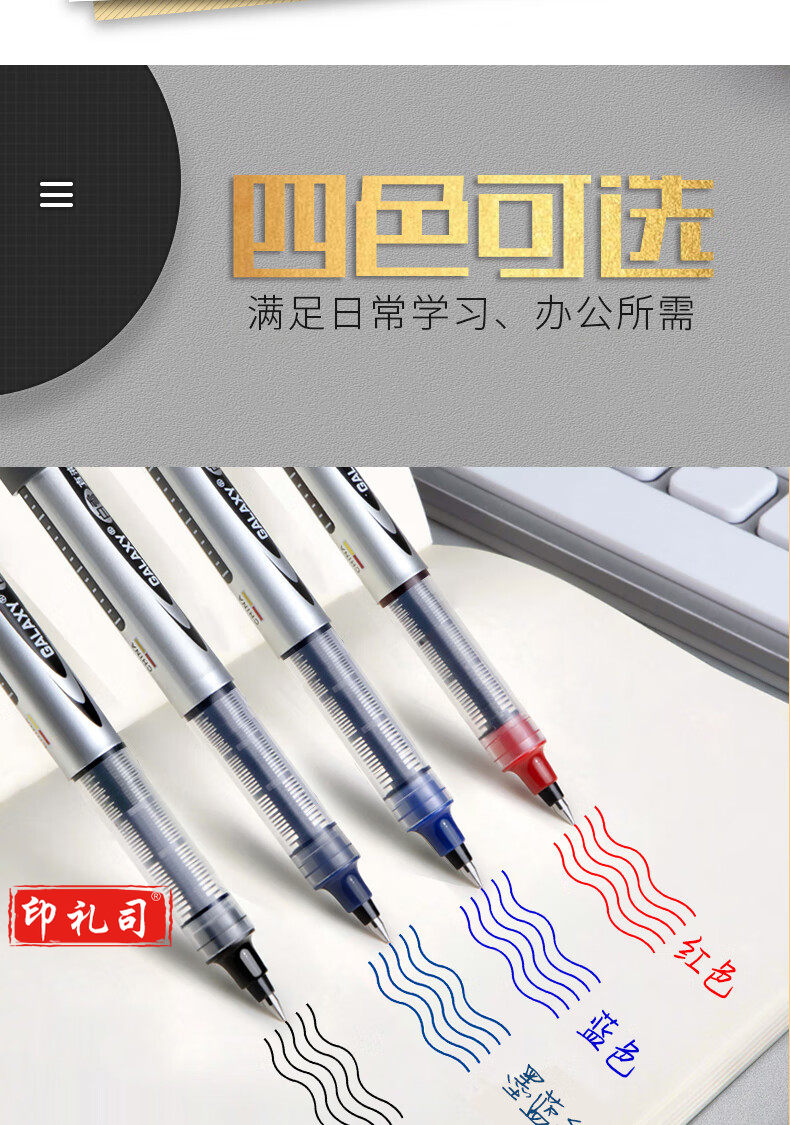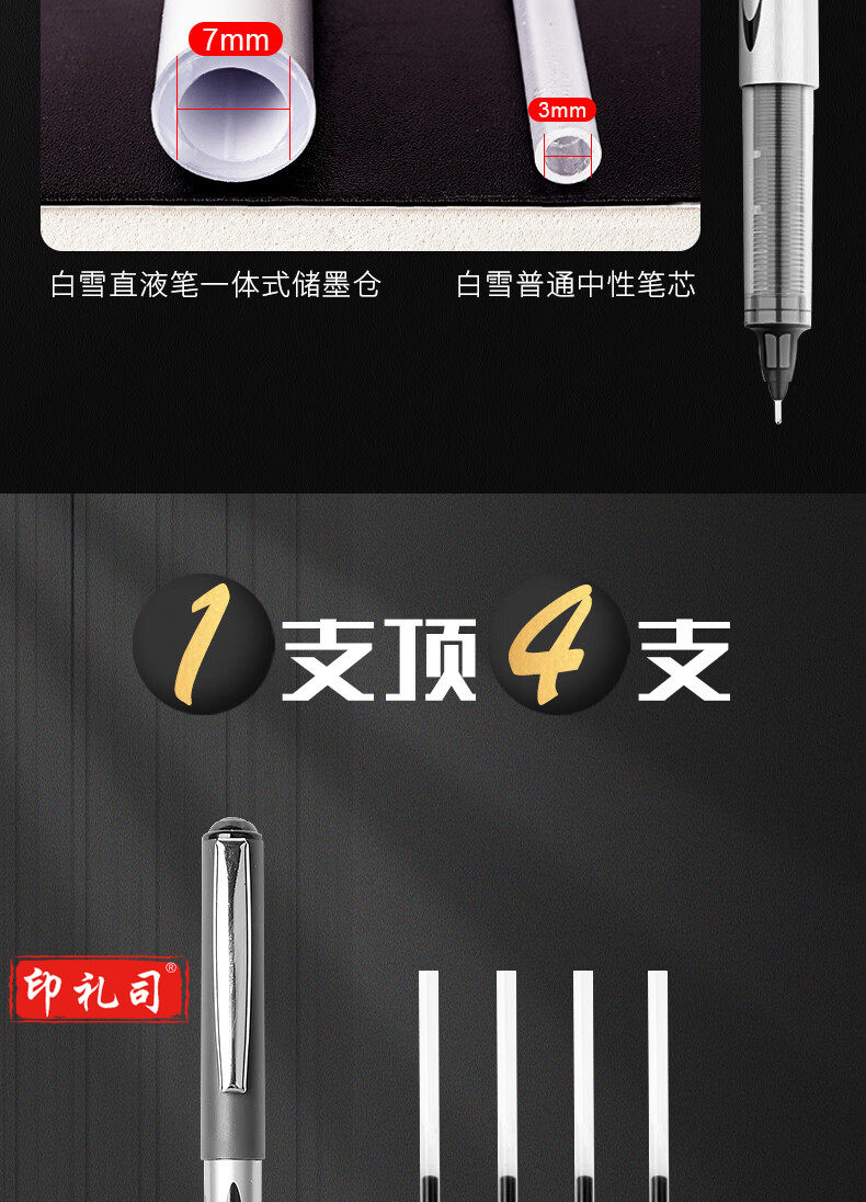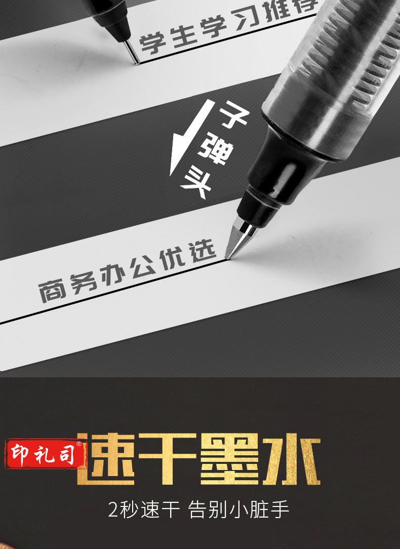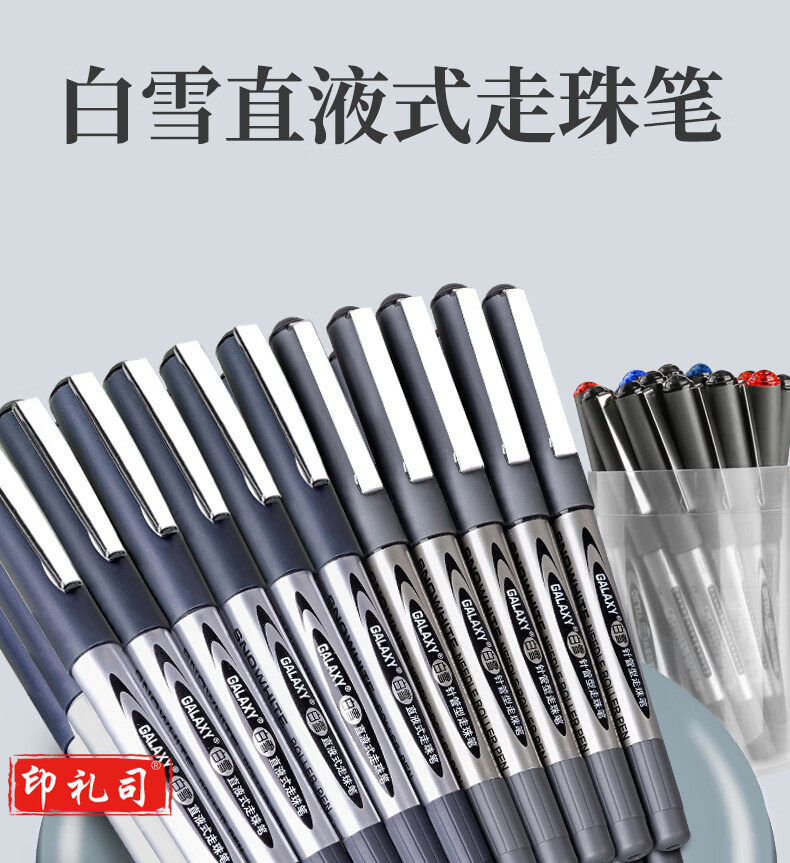 白雪(snowhite)PVR-155直液式走珠笔子弹型学生办公用中性笔签字笔考试专用笔0.5mm黑色12支/盒