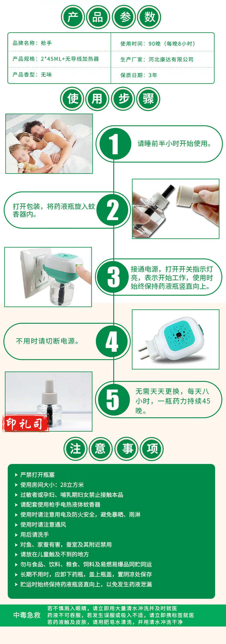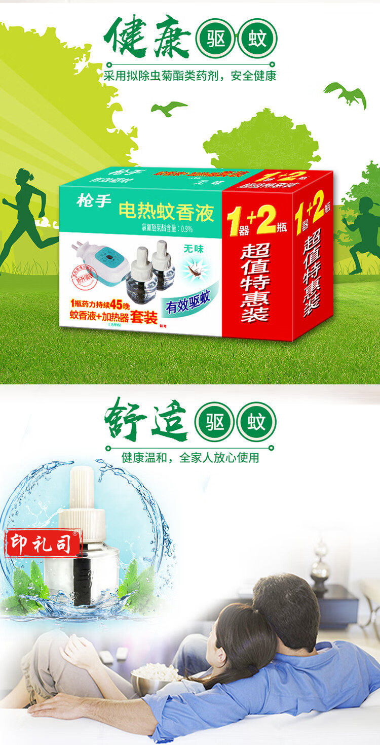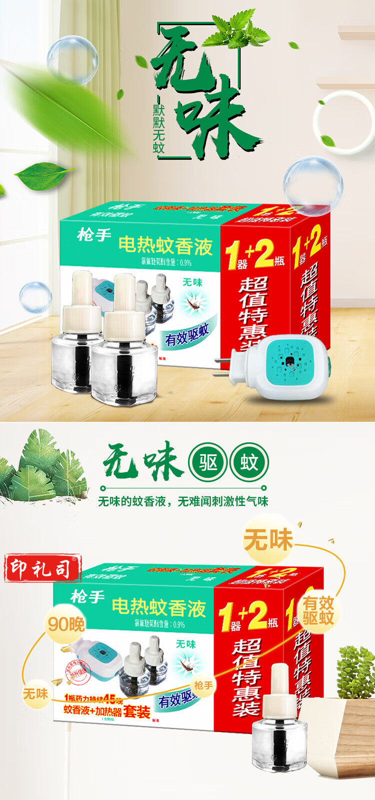 枪手电热蚊香液套装 无导线 无味 1器+2瓶 无香型 驱蚊液 电蚊香