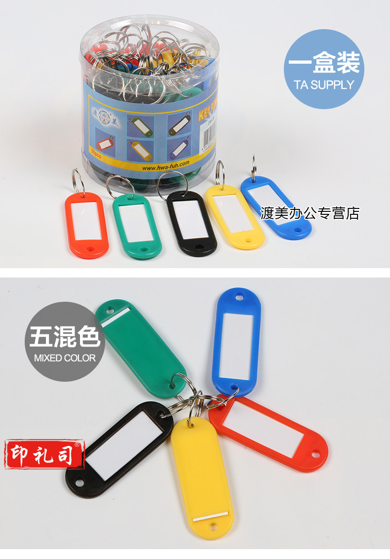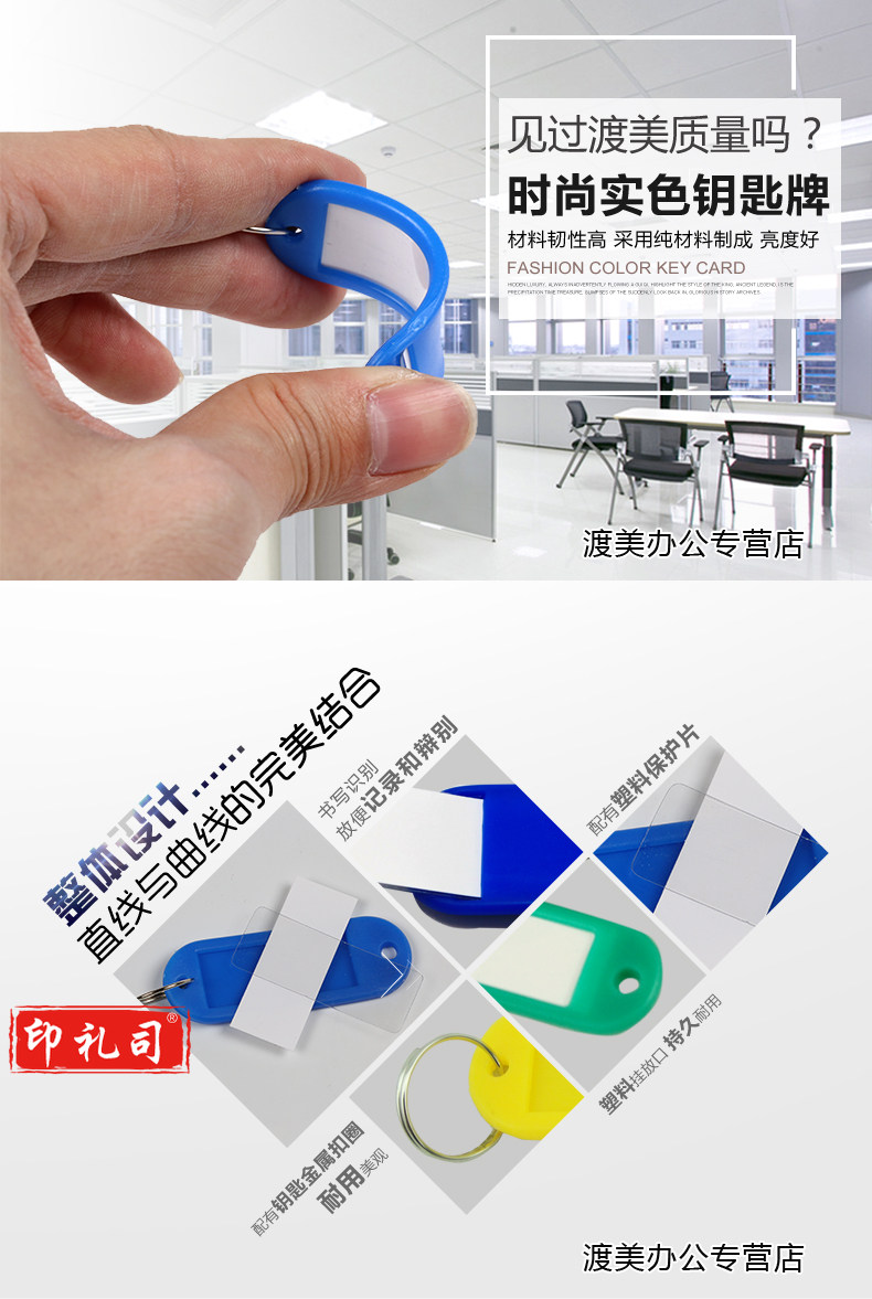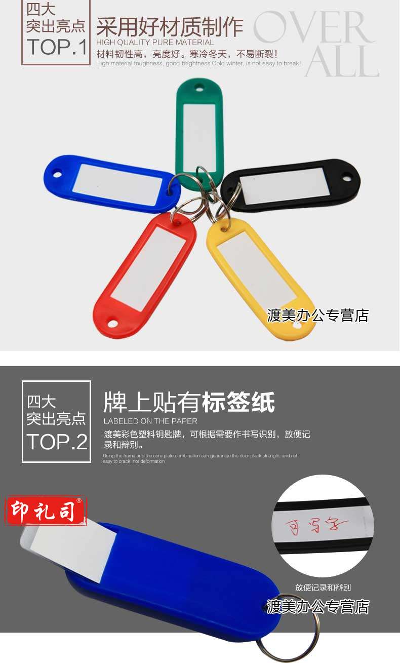 渡美DM-08 渡美透明彩色塑料钥匙牌 钥匙牌扣挂牌钥匙环 50个装