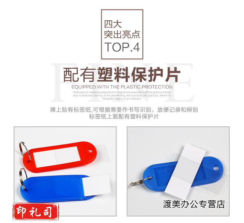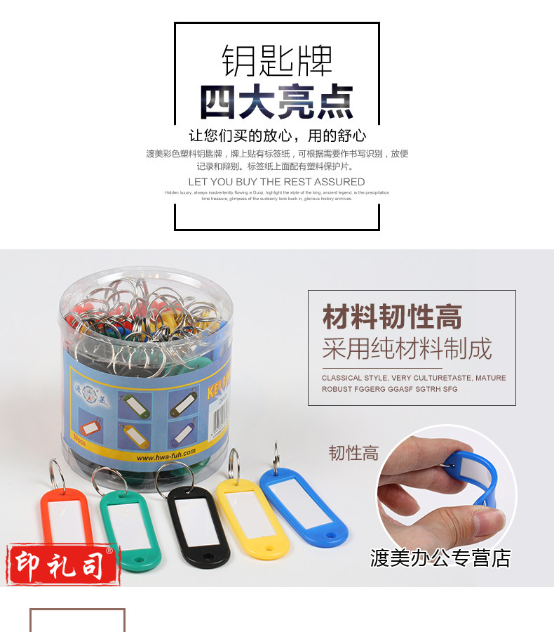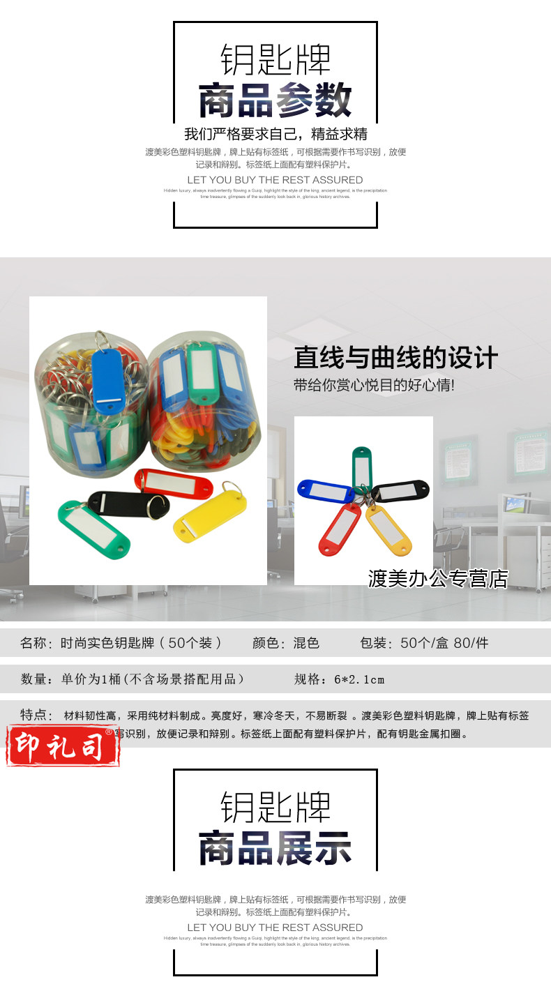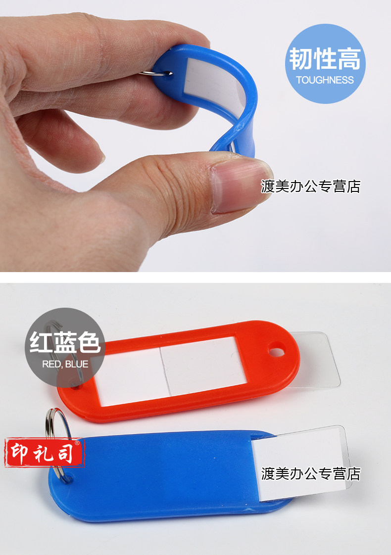 渡美DM-08 渡美透明彩色塑料钥匙牌 钥匙牌扣挂牌钥匙环 50个装