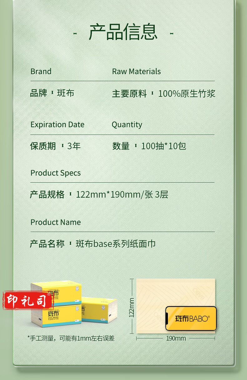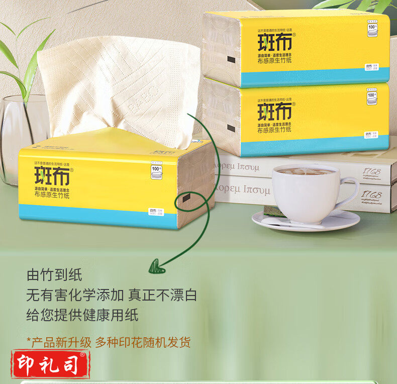斑布(BABO)抽纸擦手纸竹浆纸3层纸巾天然无香100抽*10包整提 抽纸