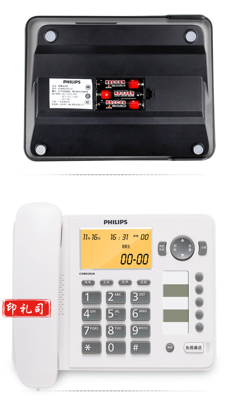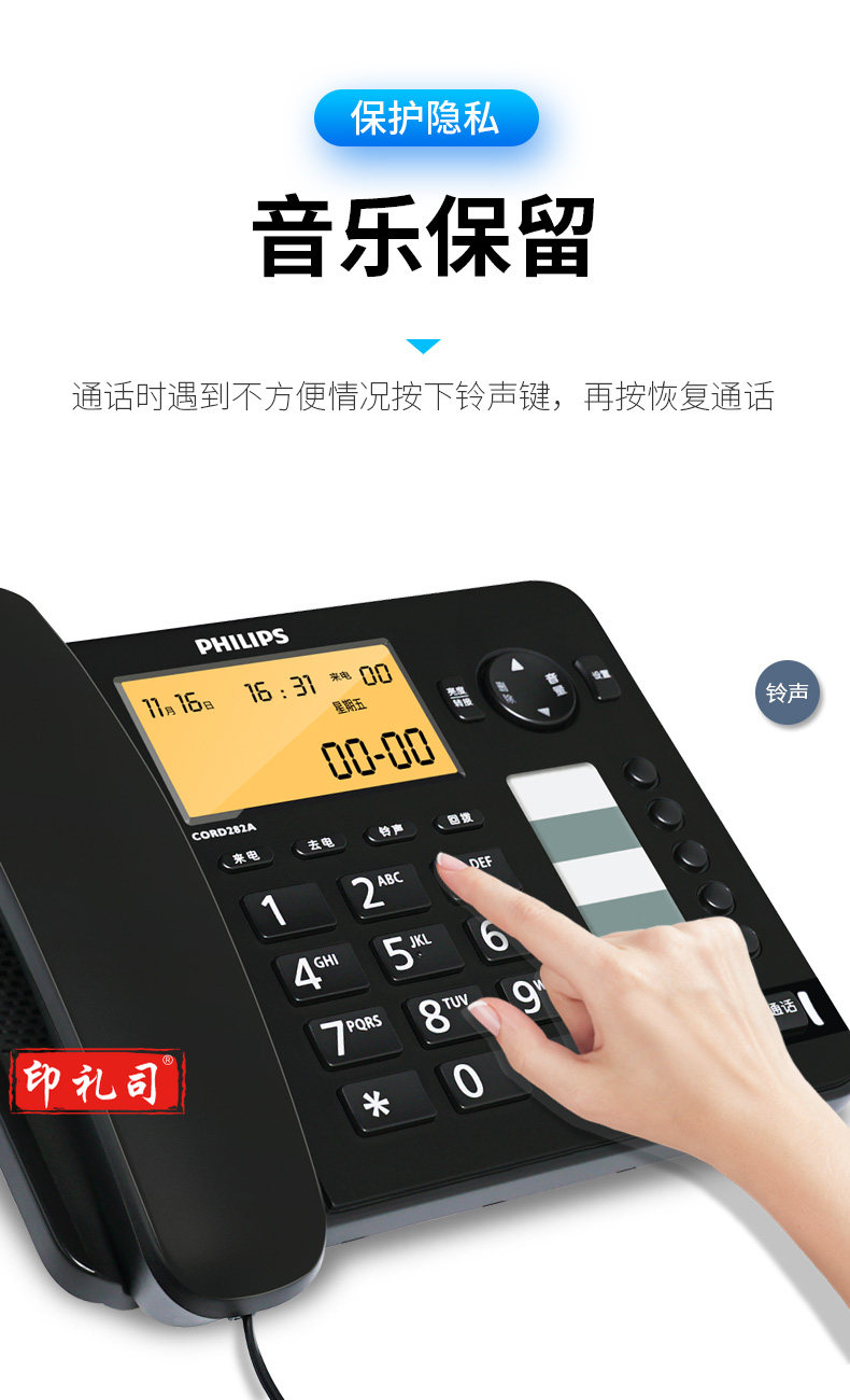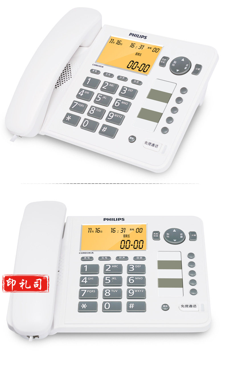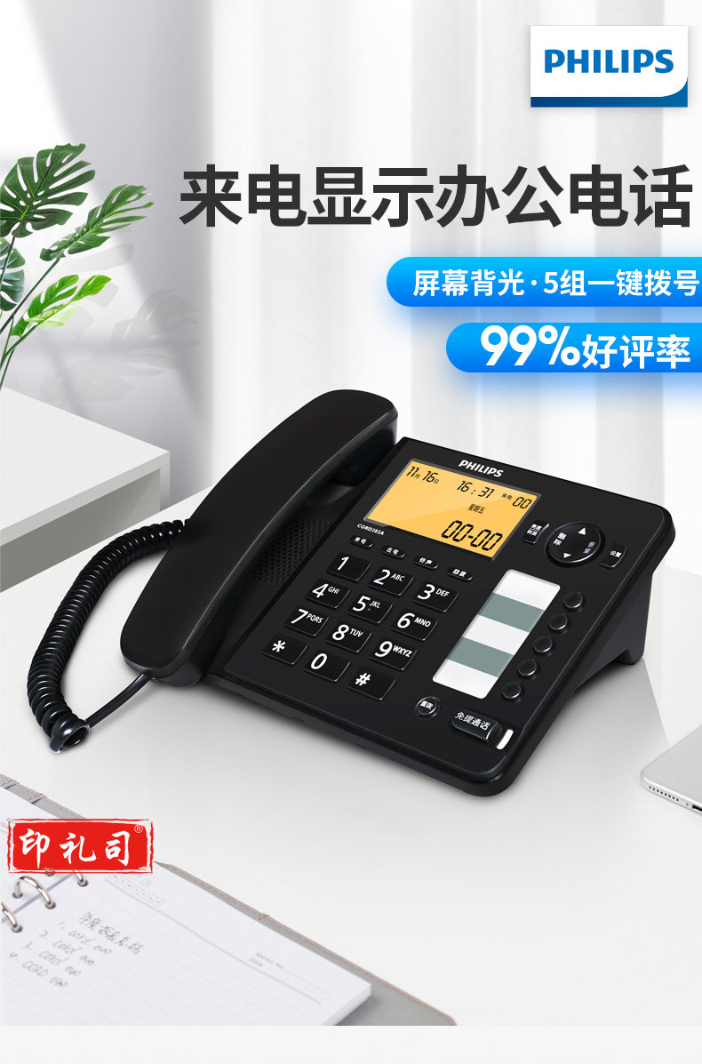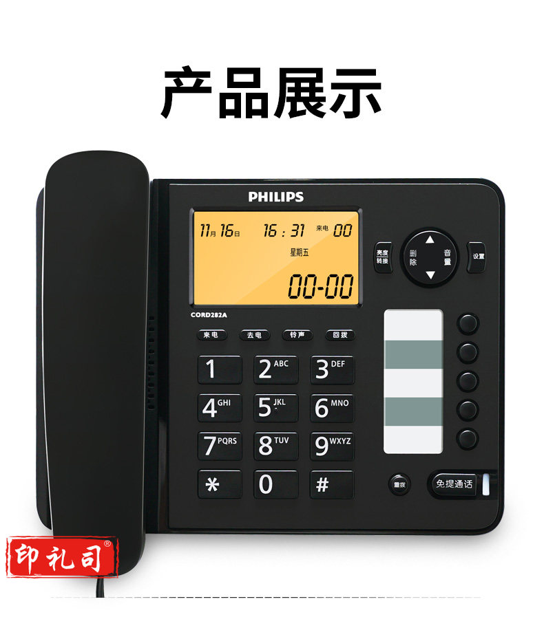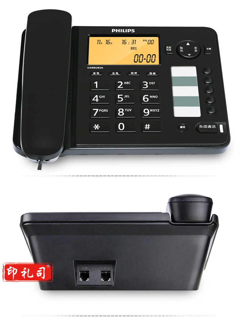 飞利浦(PHILIPS)电话机座机 屏幕橙色背光 CORD282A黑色