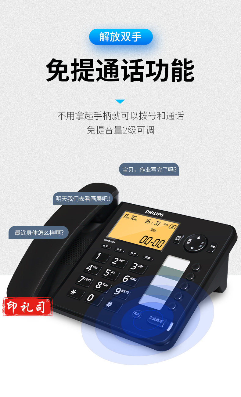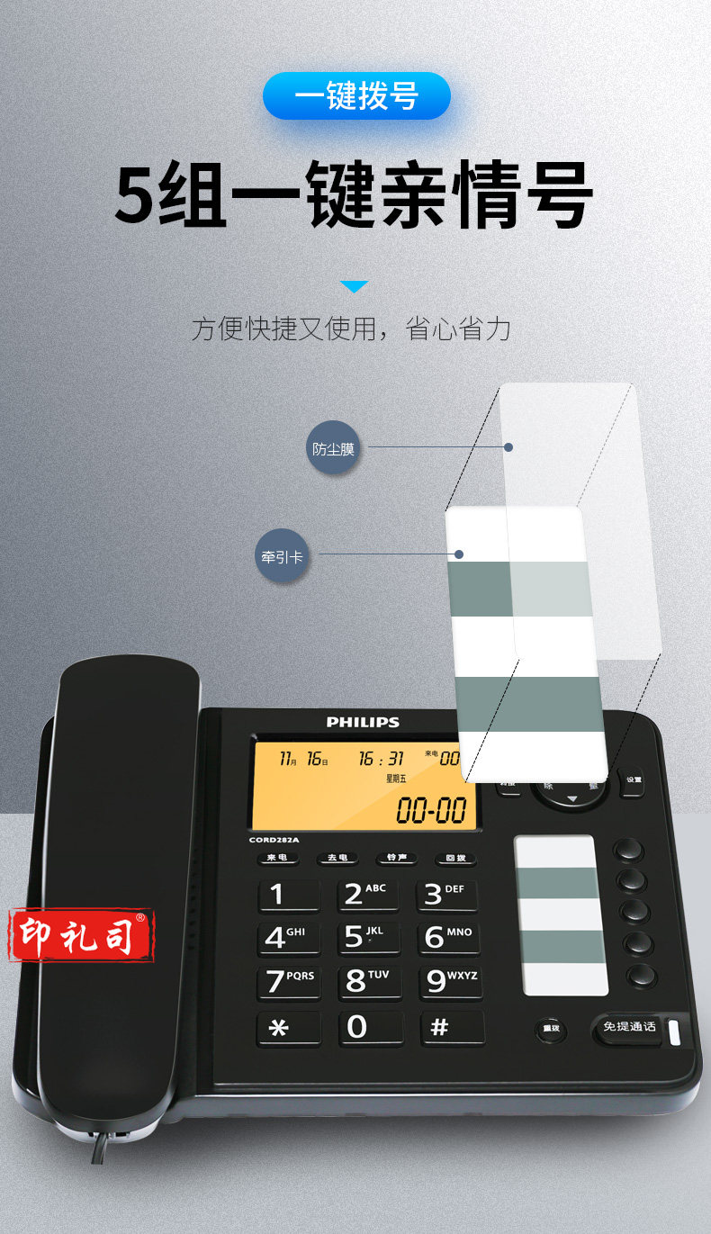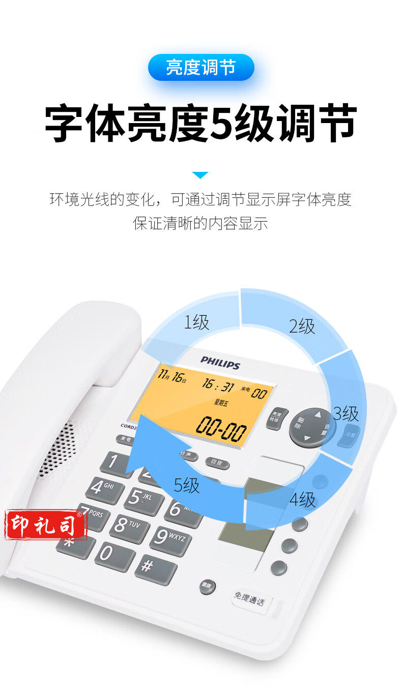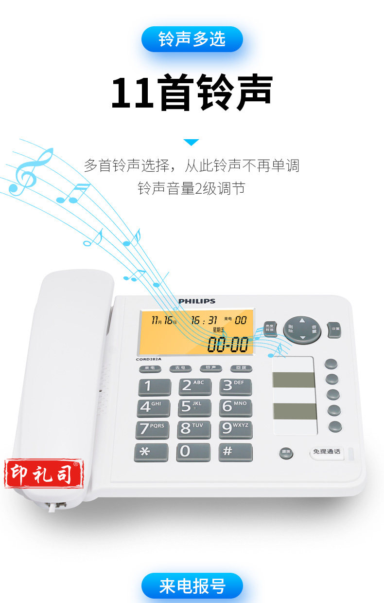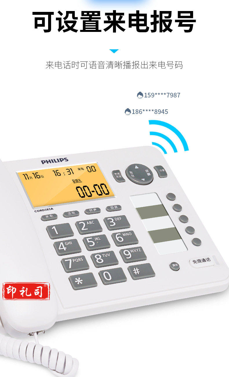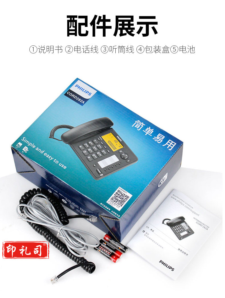 飞利浦(PHILIPS)电话机座机 屏幕橙色背光 CORD282A黑色