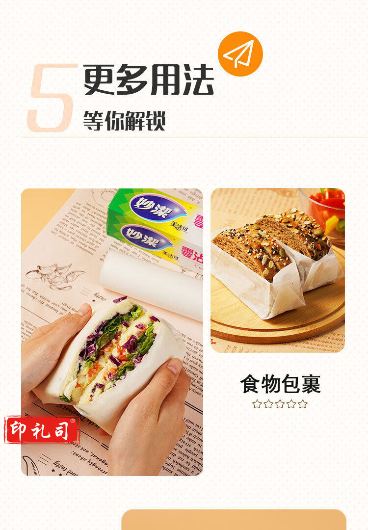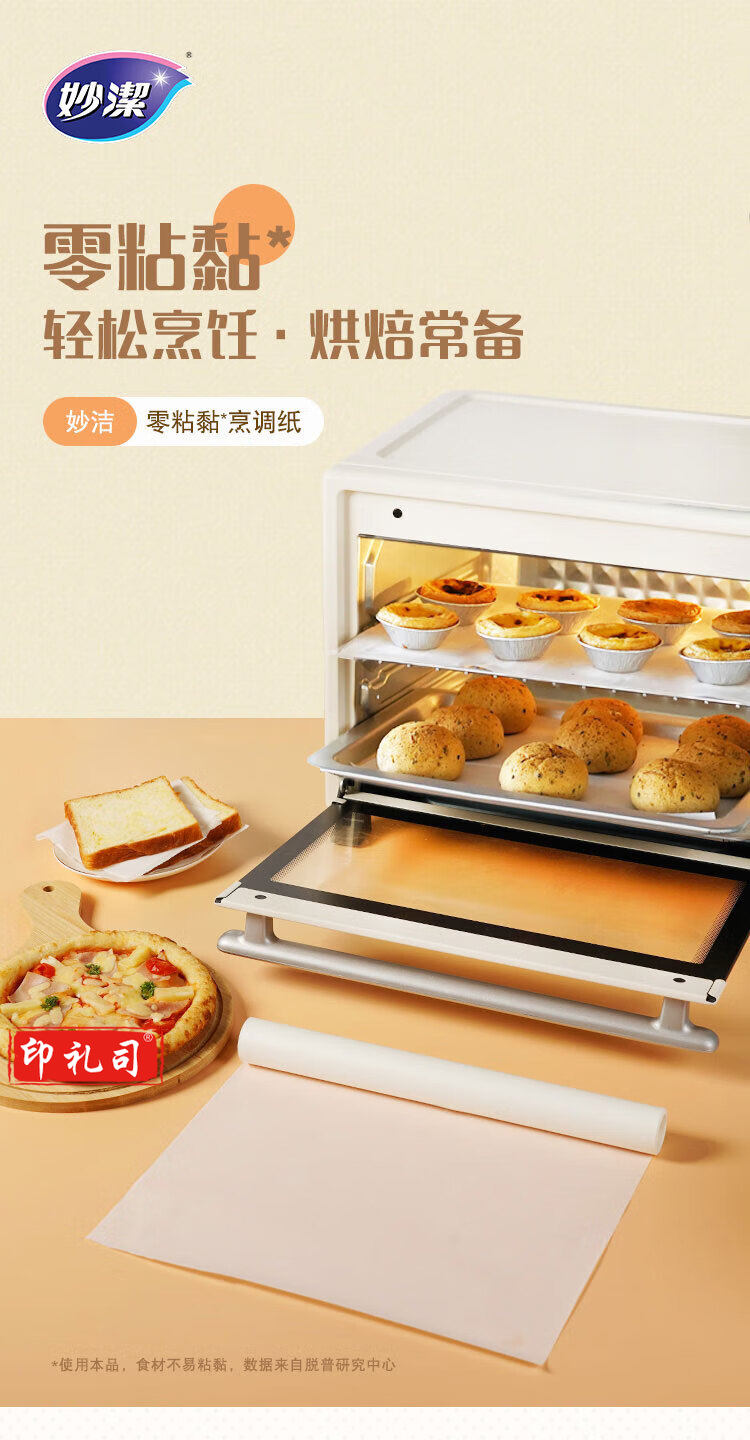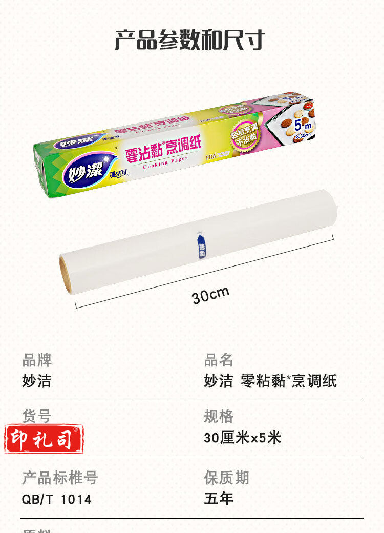 妙洁烹调纸烘焙烧烤箱吸油纸硅油纸烘微波炉空气炸锅适用 30cm*5m*5卷