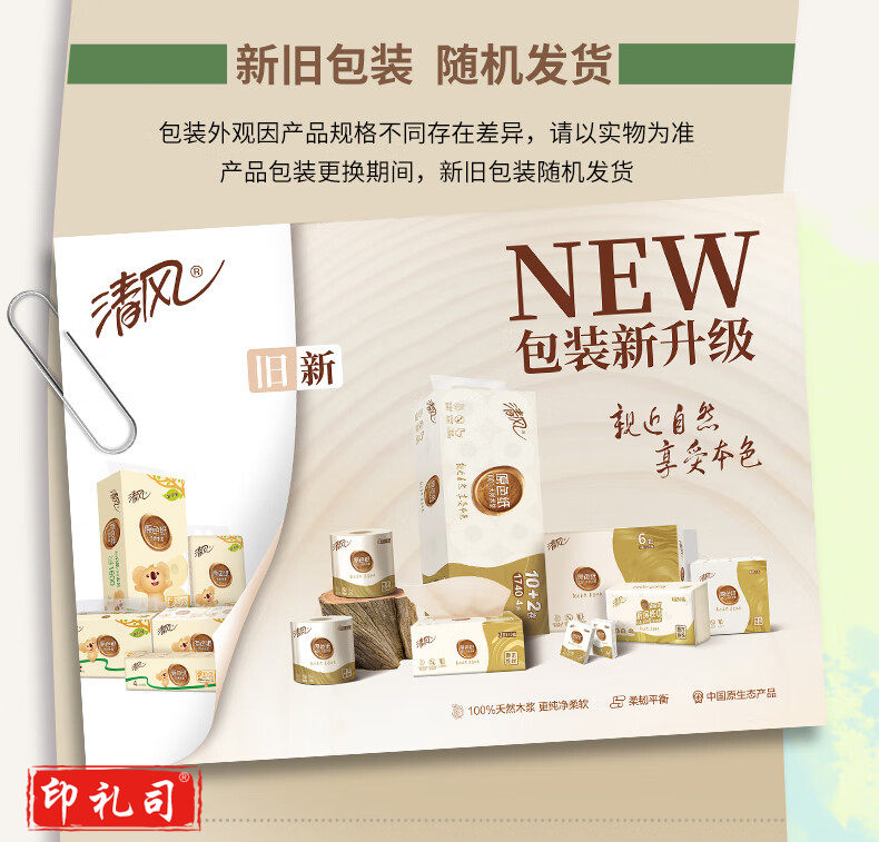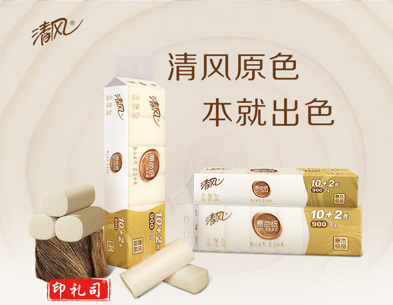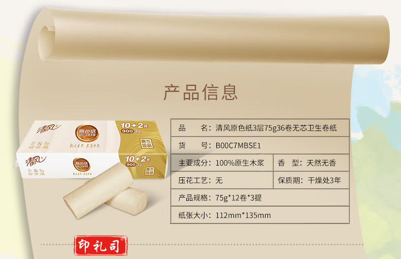 清风(APP)卷纸 原色无芯卷纸纸巾 3层75g 36卷本色纸(整箱销售)