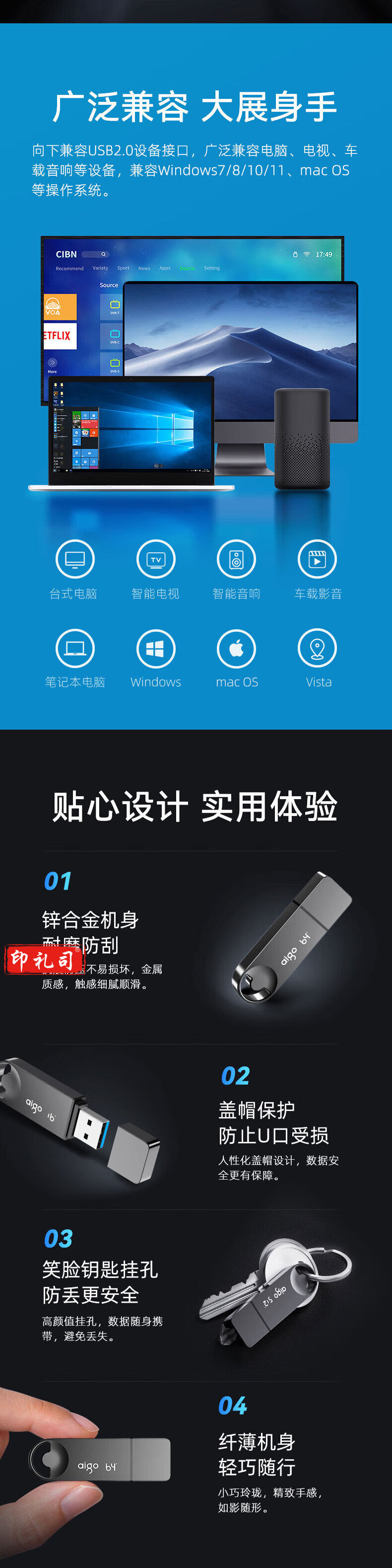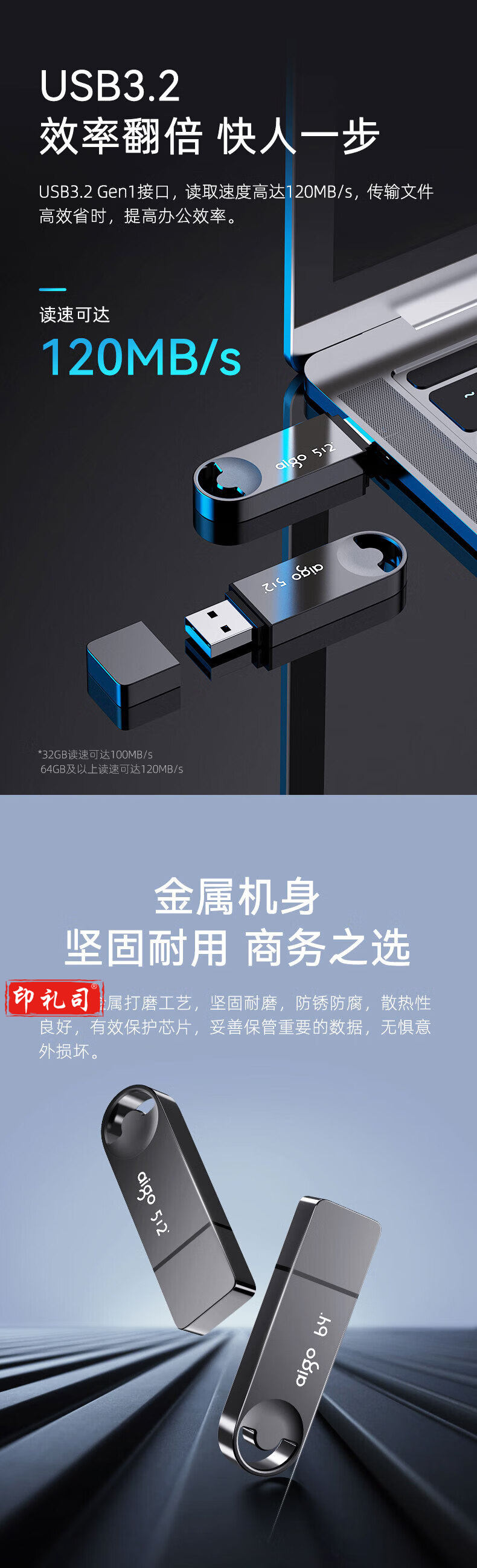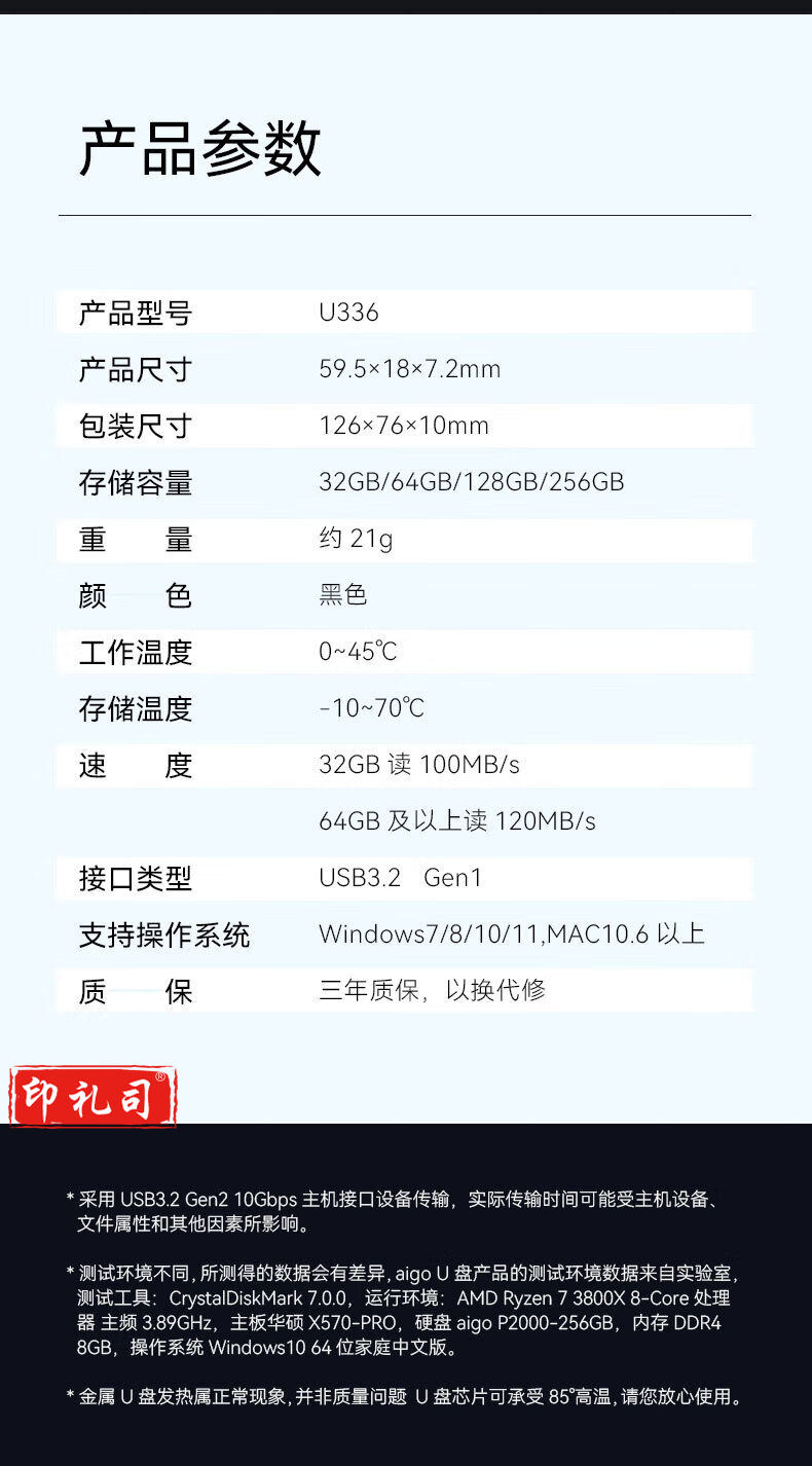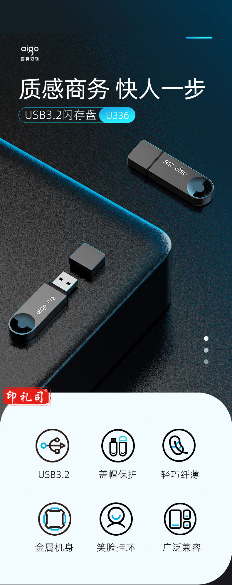 爱国者(aigo)256GB USB3.2U盘 U336 金属盖帽 系列效率快传 微笑办公