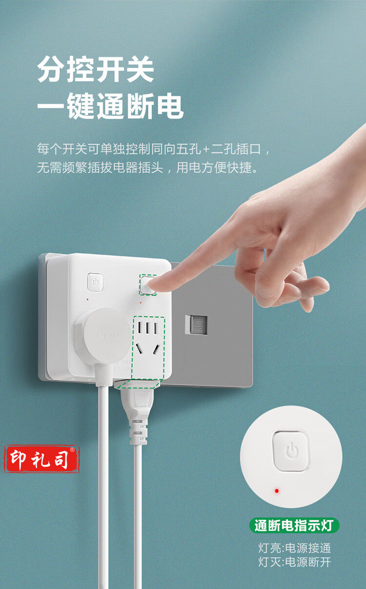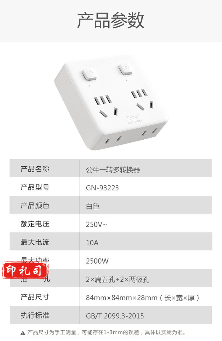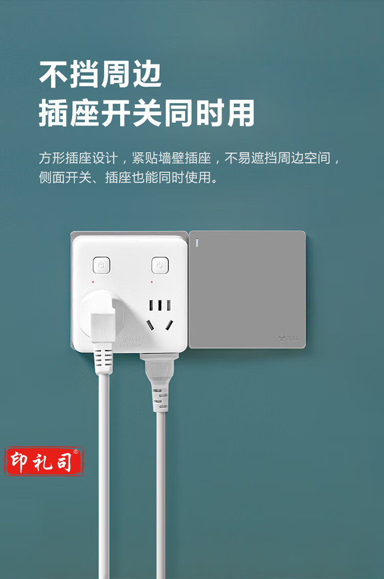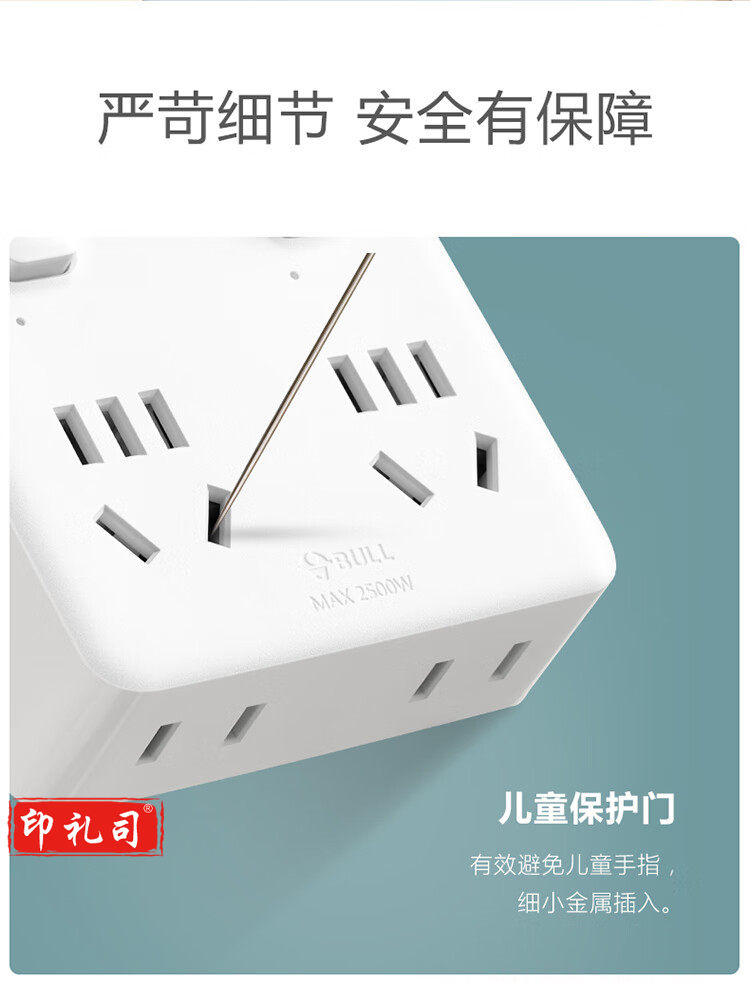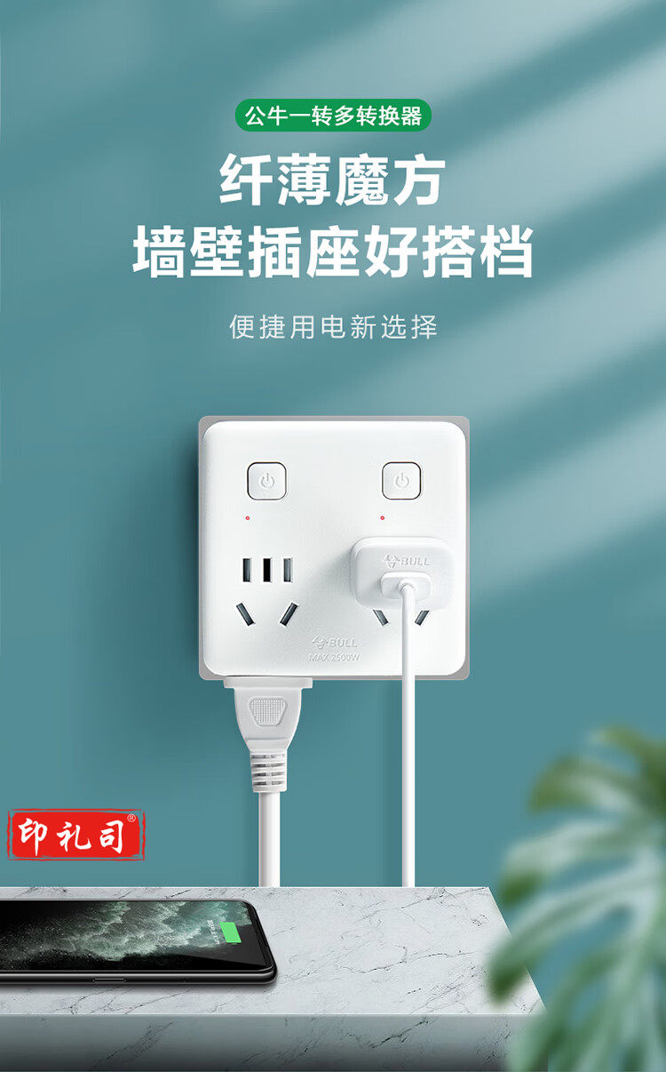 公牛 86型转换插头/插座/转换插座/电源转换器 一转四转换插头 适用于卧室、厨房 4位分控 GN-93223