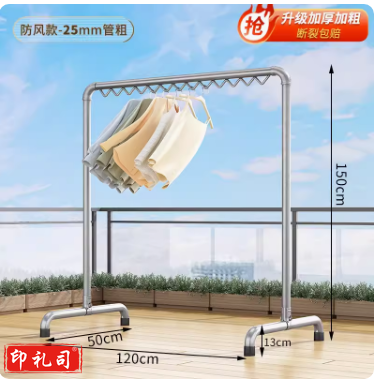 钢管晾衣架落地卧室折叠凉衣单杆秋冬加厚防风款25管 长1.2米 高1.5米 TJHX11231208165233