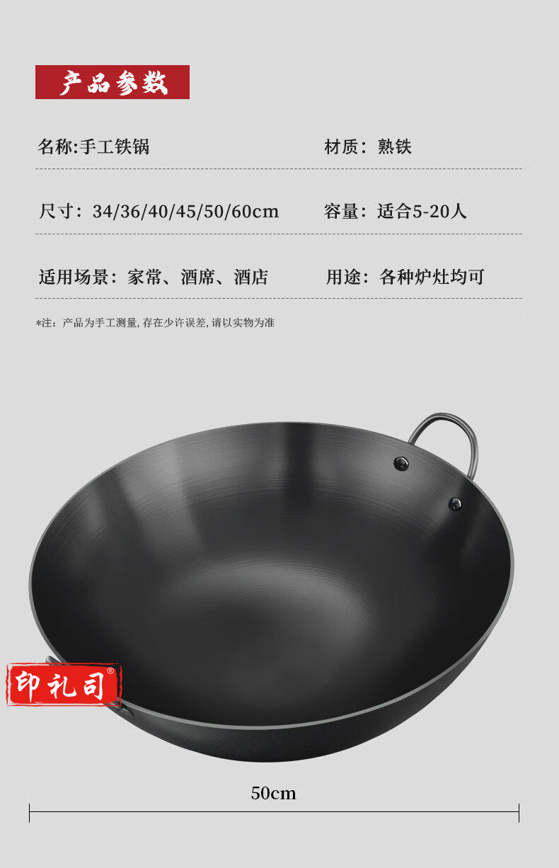 美菱(MeiLing)双耳商用大铁锅章丘手工锻打无涂层炒锅熟铁圆底燃气炉炒菜锅55cm