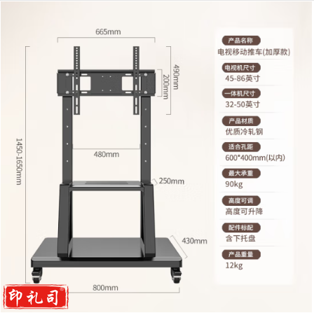 匠无同电视移动支架落地32-75英寸推车视频会议智慧屏带轮电视架通用挂架