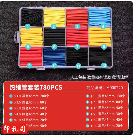 热缩管绝缘套管软热缩套管电线保护套接线套数据线充电线修复万能 彩色780pcs【盒装】 3倍收缩