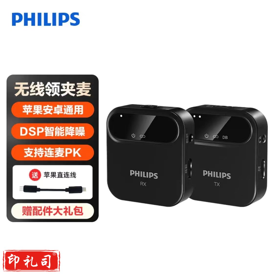 飞利浦无线领夹麦克风小蜜蜂收音麦直播麦克风设备收音器Vlog短视频采访话筒手机相机IOS安卓通用DLM3538C TJHX05090948473479