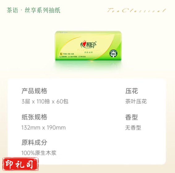 心相印抽纸 茶语丝享3层110抽*60包S码 纸巾 餐巾纸(箱)VWXX03011818298978