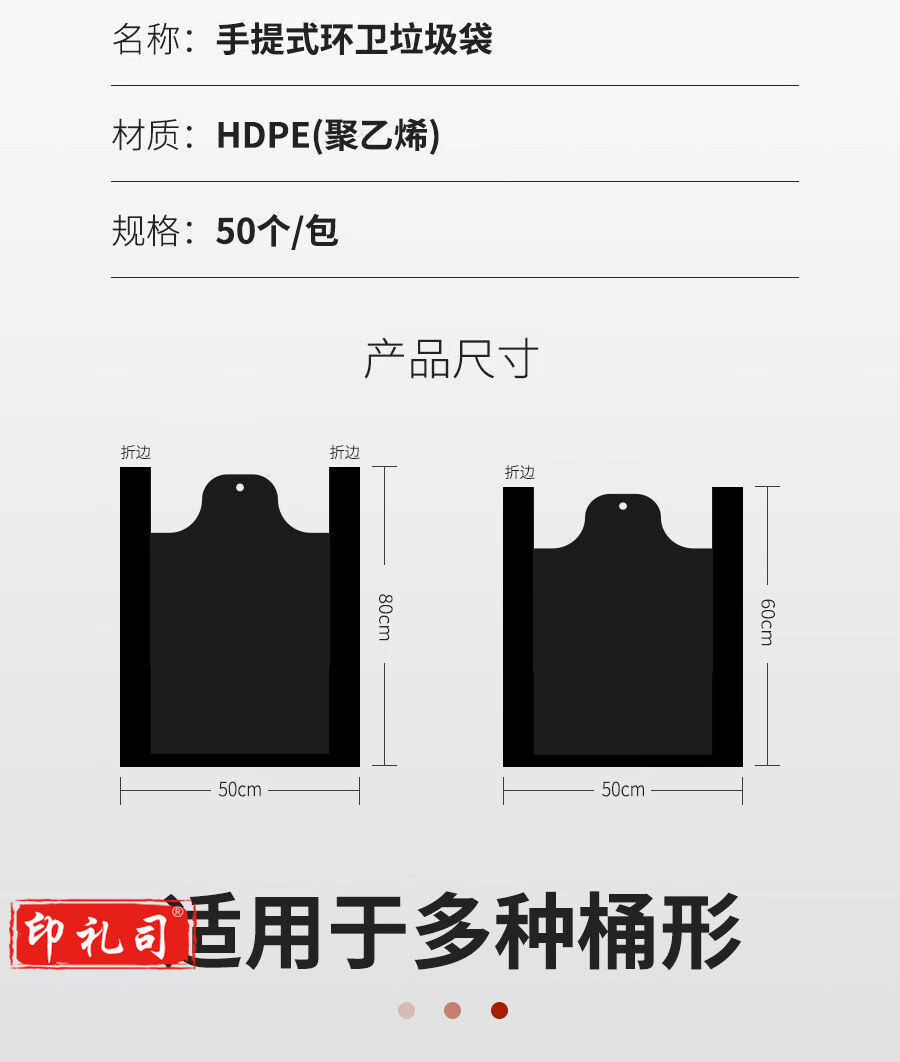品墨格环保加厚垃圾袋背心垃圾袋手提垃圾袋50只装*2包 80×50cm 包