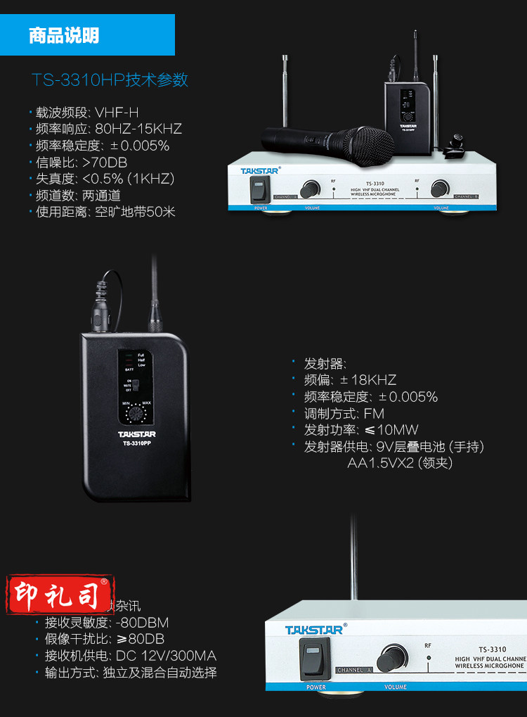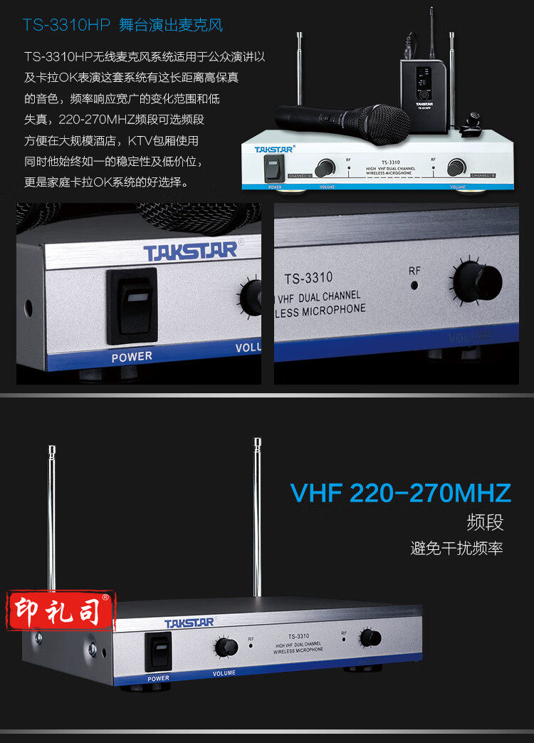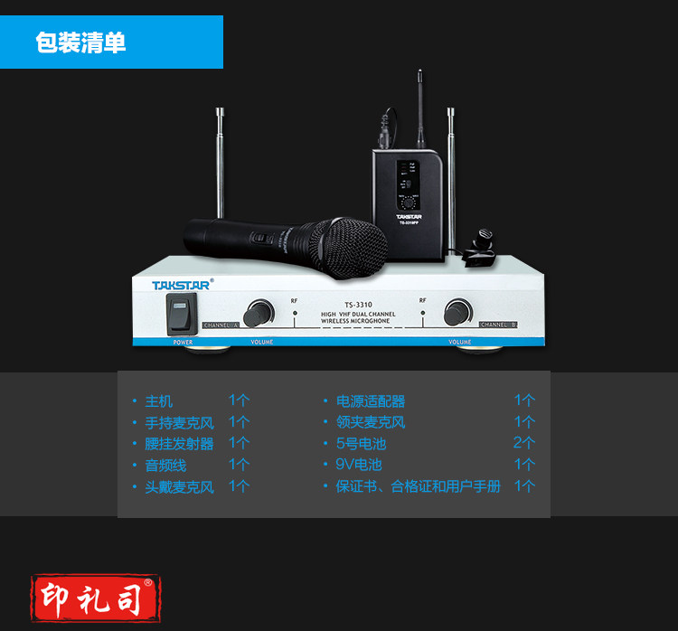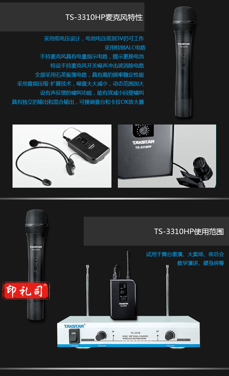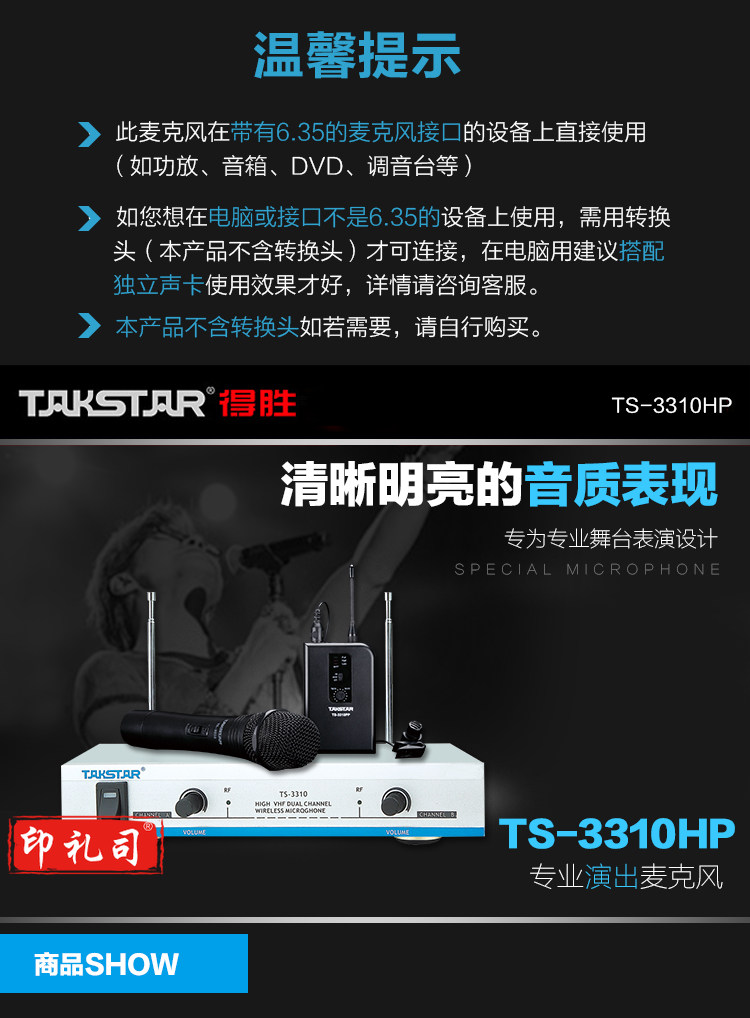 得胜(TAKSTAR)TS-3310HP无线麦克风 一拖二无线话筒 专业演出会议主持 1领夹+1手持