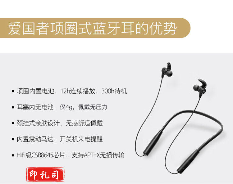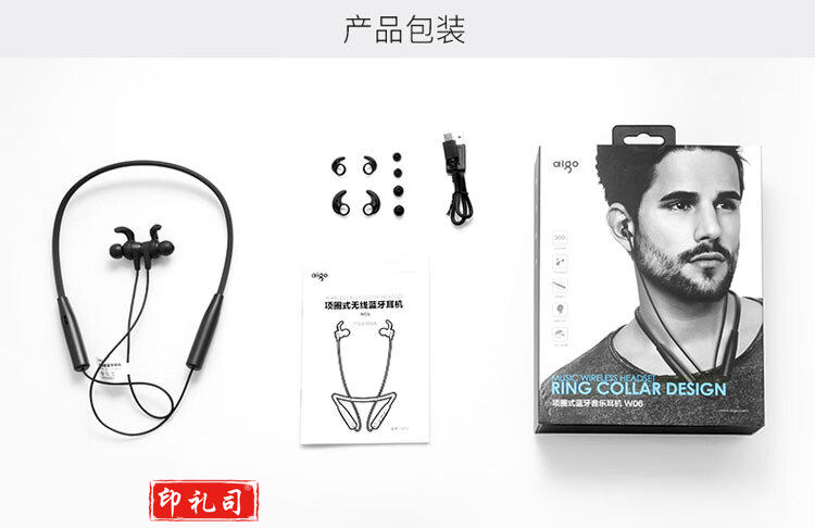 aigo国民好物爱国者 W06 蓝牙项圈耳机 运动无线蓝牙耳机 挂脖颈挂式双入耳 耳塞式耳机