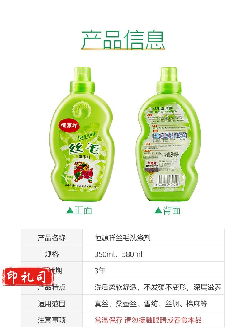 恒源祥 丝毛净桑蚕丝真丝洗衣液 干洗丝毛洗涤剂丝绸羽绒服清洗剂350ml/瓶