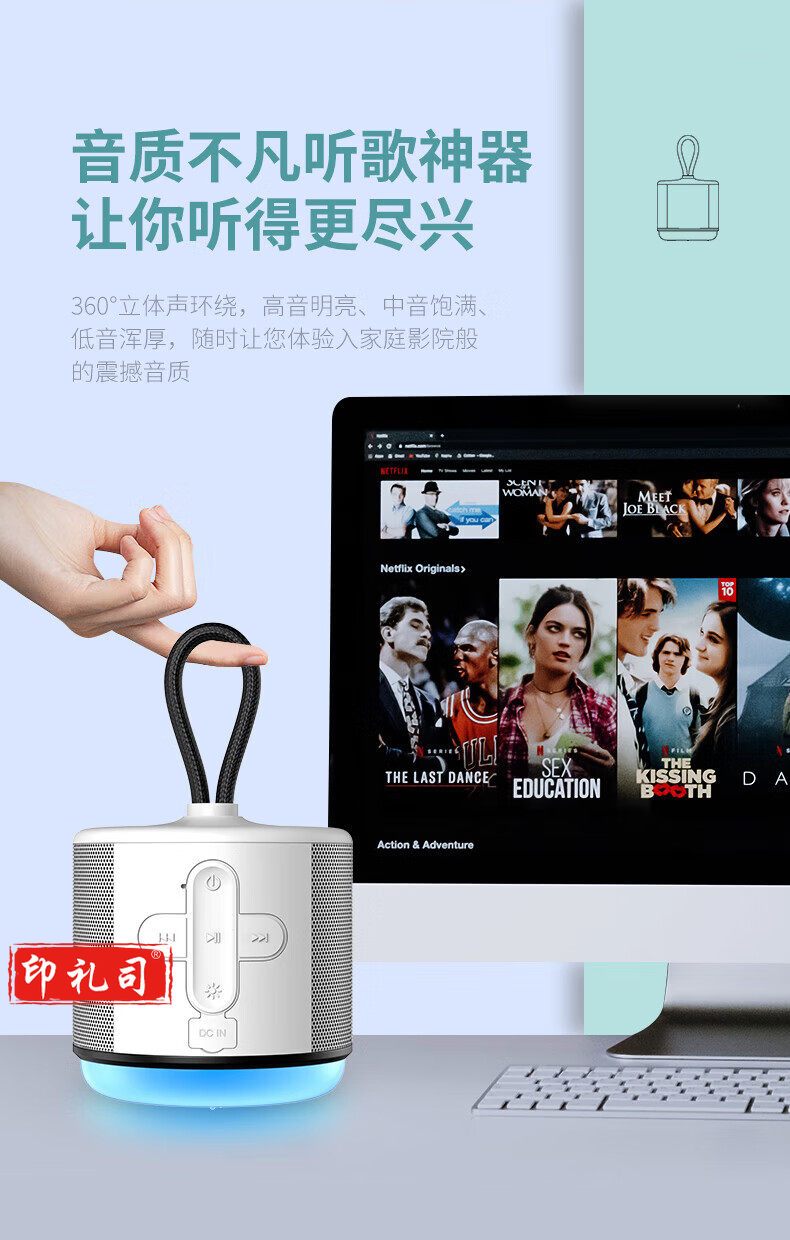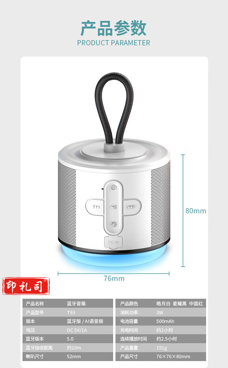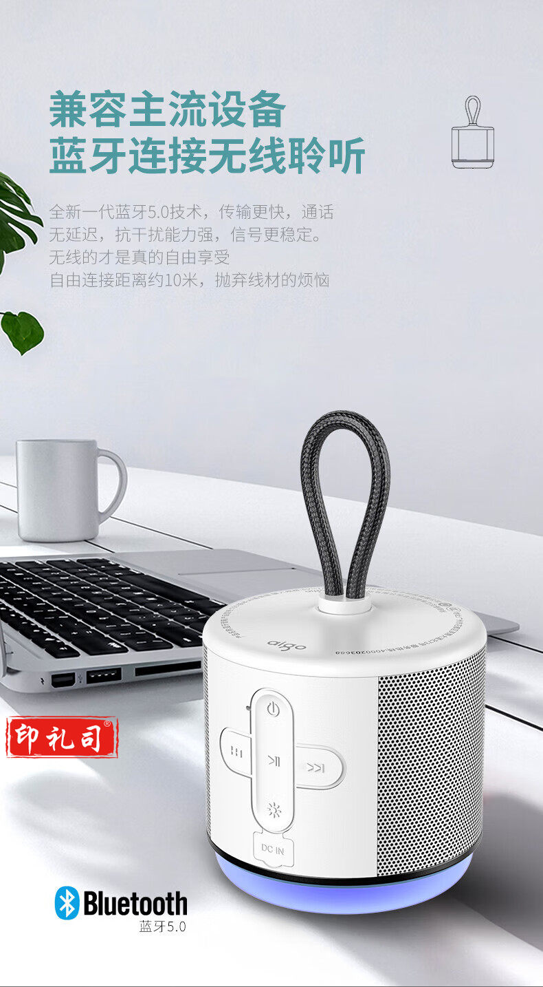 爱国者T93桌面迷你蓝牙音响 多媒体无线便携音箱 户外骑行手机电脑车载低音炮AI语音版 皓月白