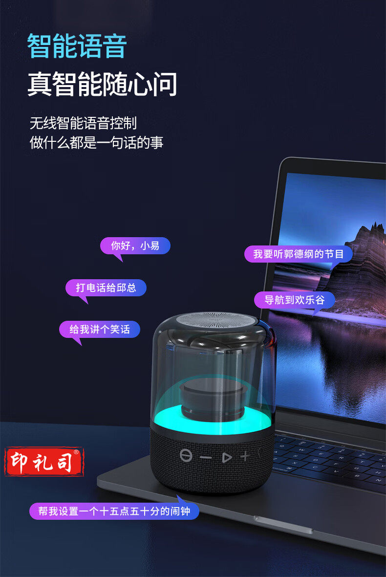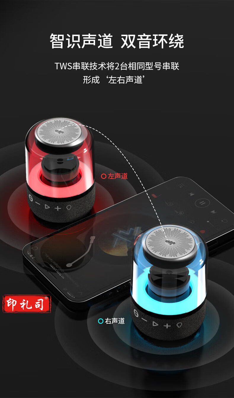 爱国者T91 智能音响 Ai语音控制 无线迷你便携车载蓝牙音箱 高清通话支持TWS互联 黑色