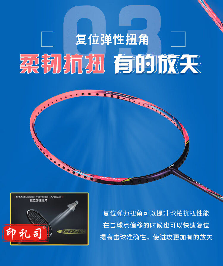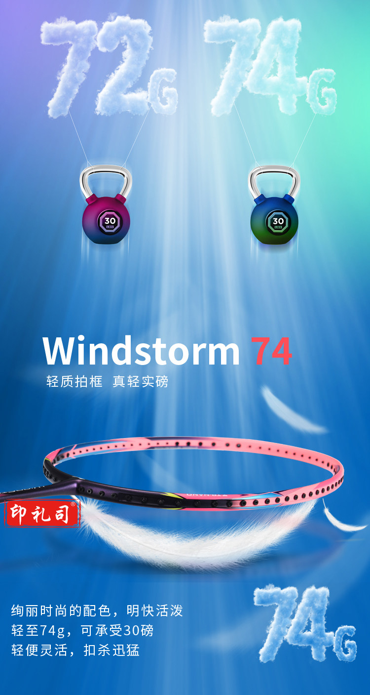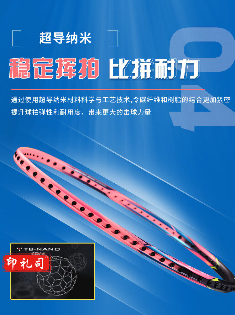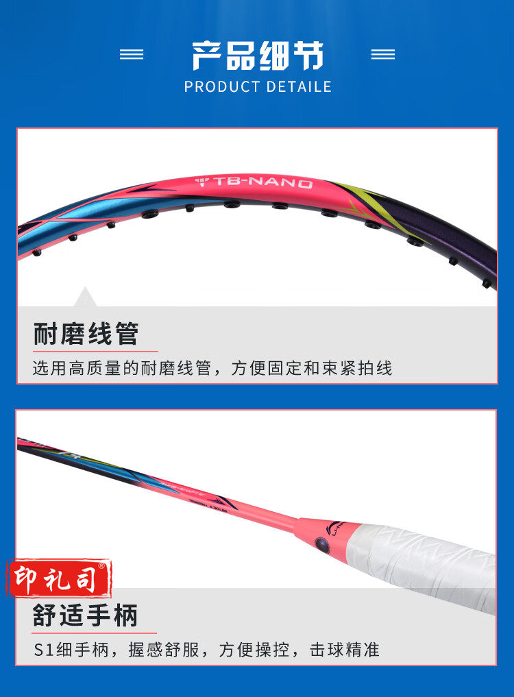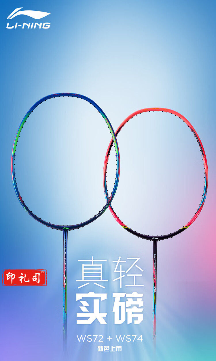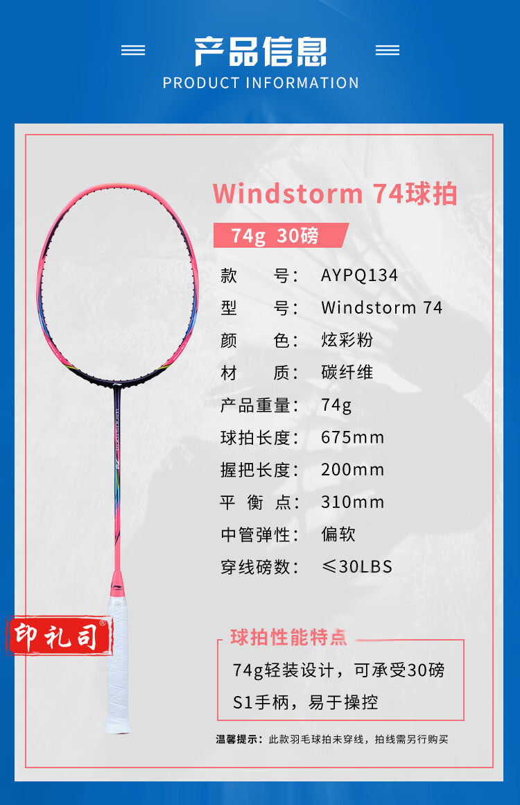 李宁(LI-NING)羽毛球拍WS74碳纤维轻装74g高磅30羽毛球拍AYPQ134-1炫彩粉(空拍送手胶)