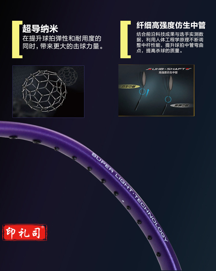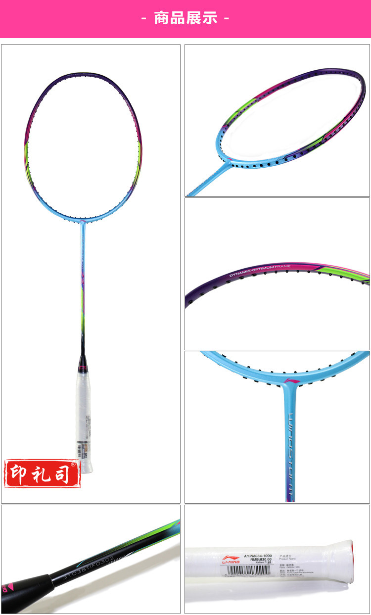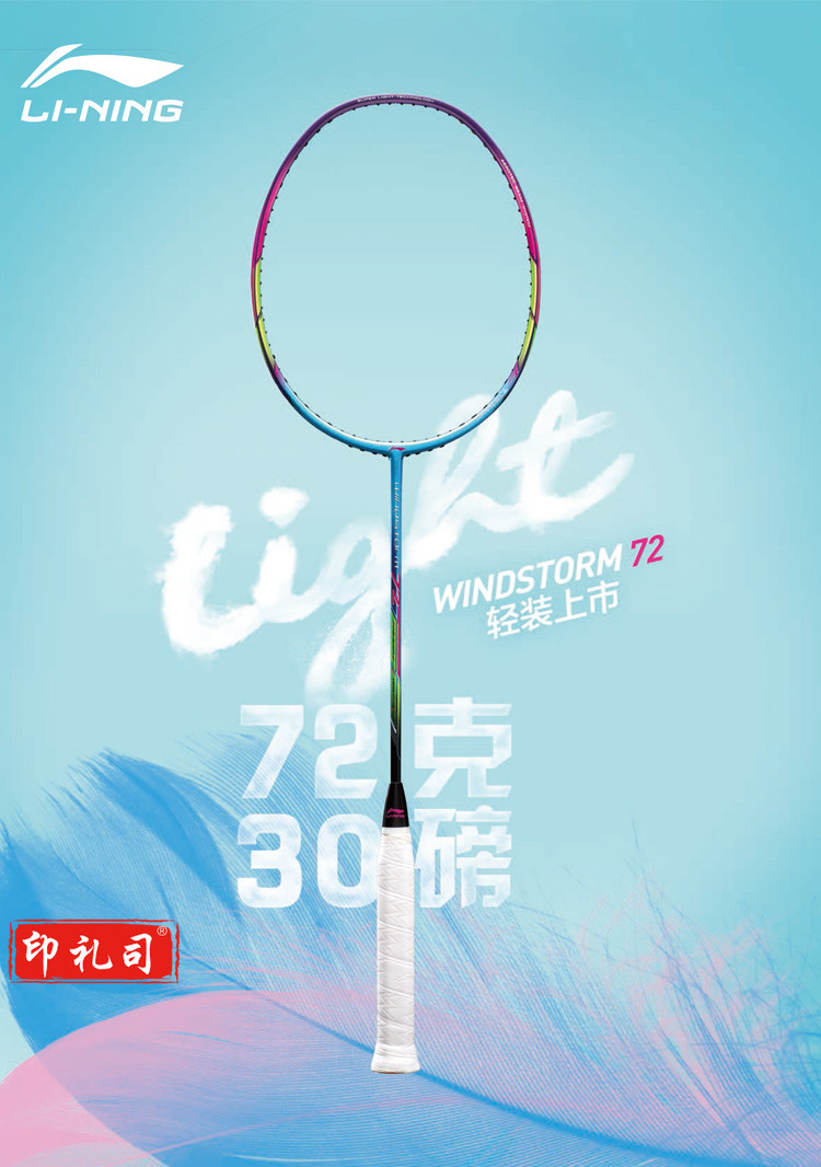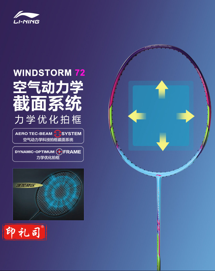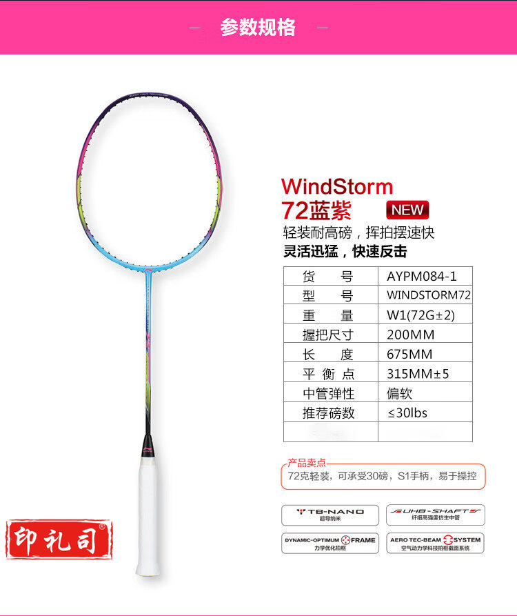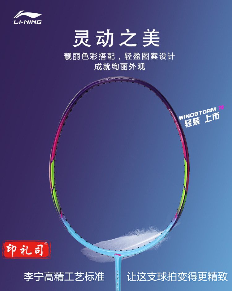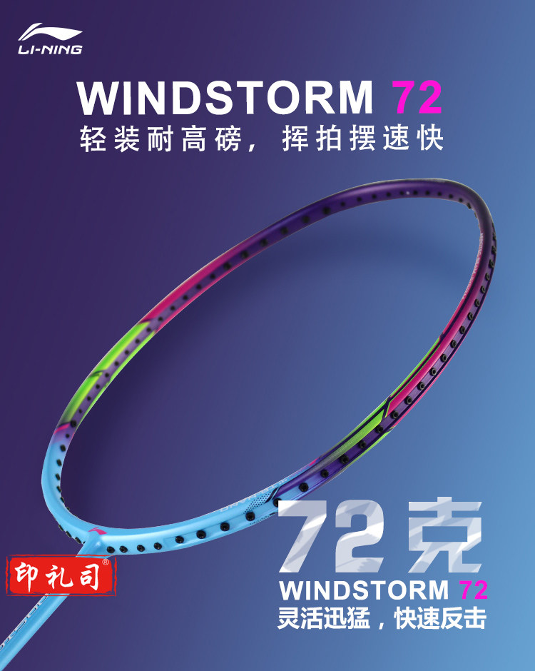 李宁(LI-NING)羽毛球拍6U全碳素超轻WS72高磅轻量进攻型单拍AYPM084-1 蓝/紫 (空拍送手胶)