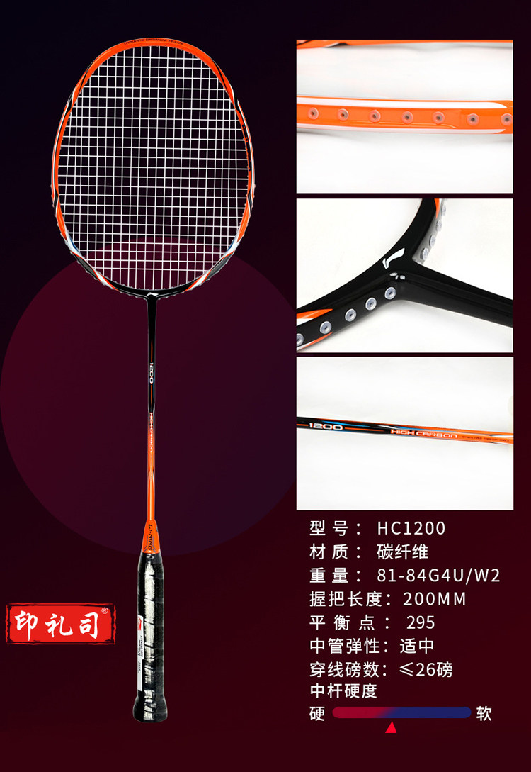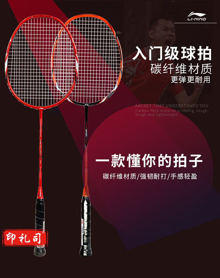 李宁 LI-NING 羽毛球对拍超轻4U3U全碳素男女双拍 HC1200+ A880T 送橙色大包6只羽毛球 (已穿线)