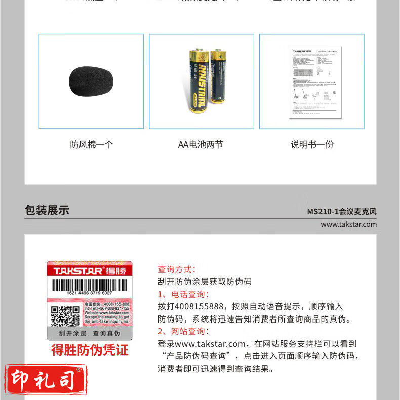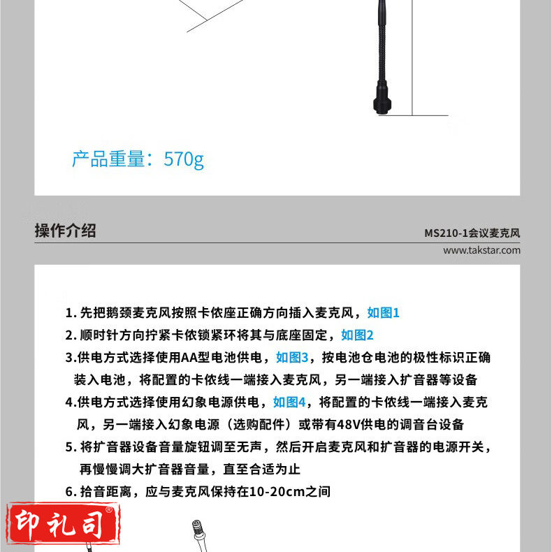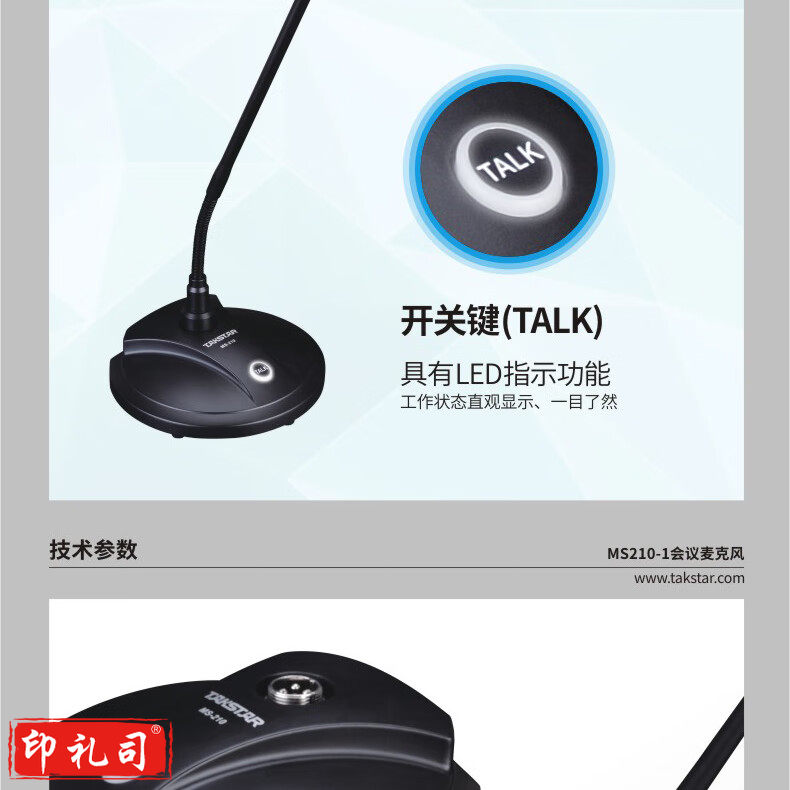 得胜(TAKSTAR) MS210-1大型会议麦克风麦鹅颈话筒桌面台式咪头工程款 黑色