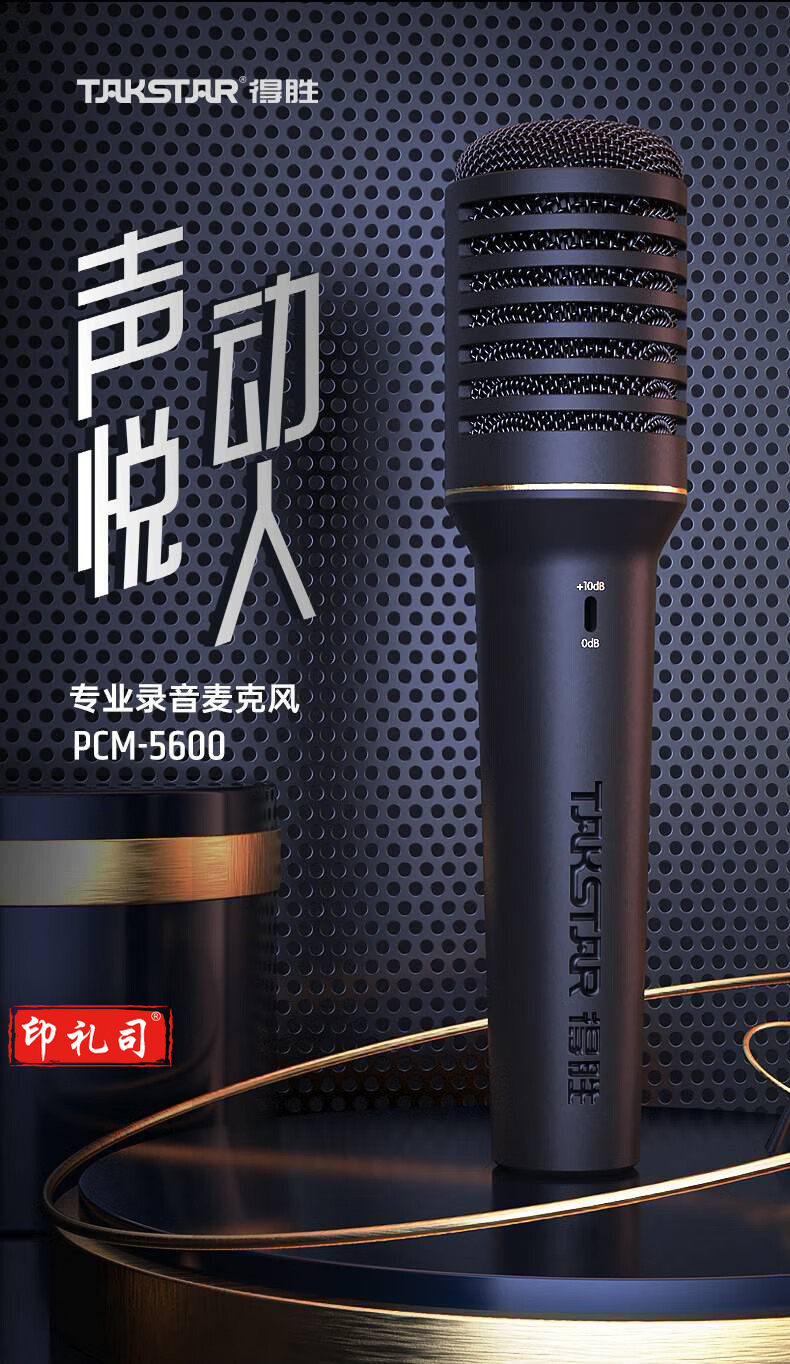 得胜(TAKSTAR)PCM-5600专业录音麦克风 直播K歌现场演出专业录音K歌喊麦大振膜话筒 黑色