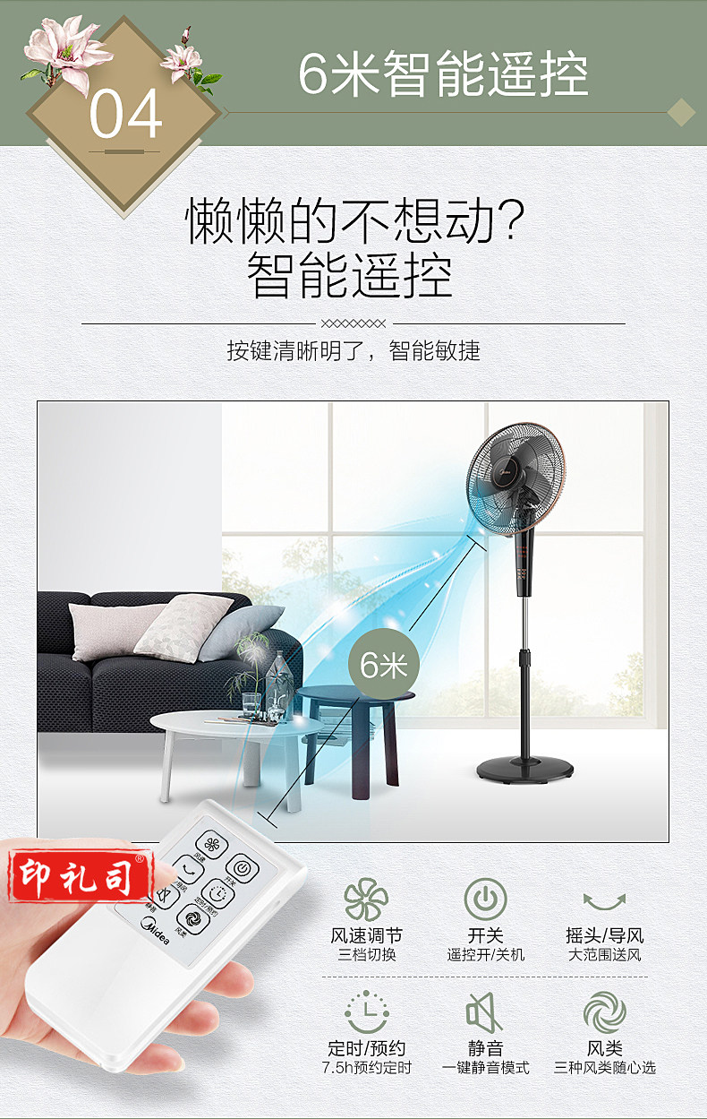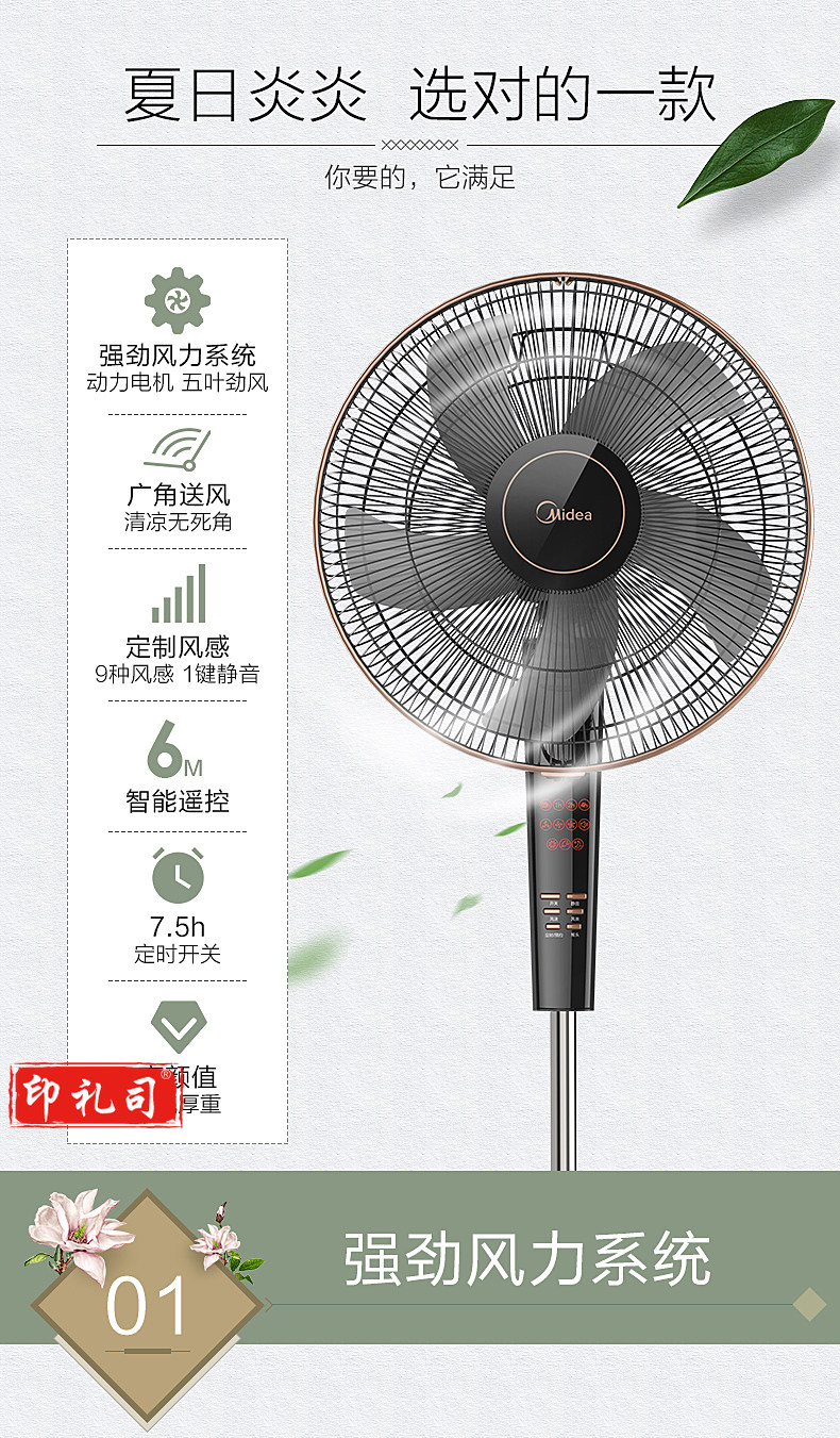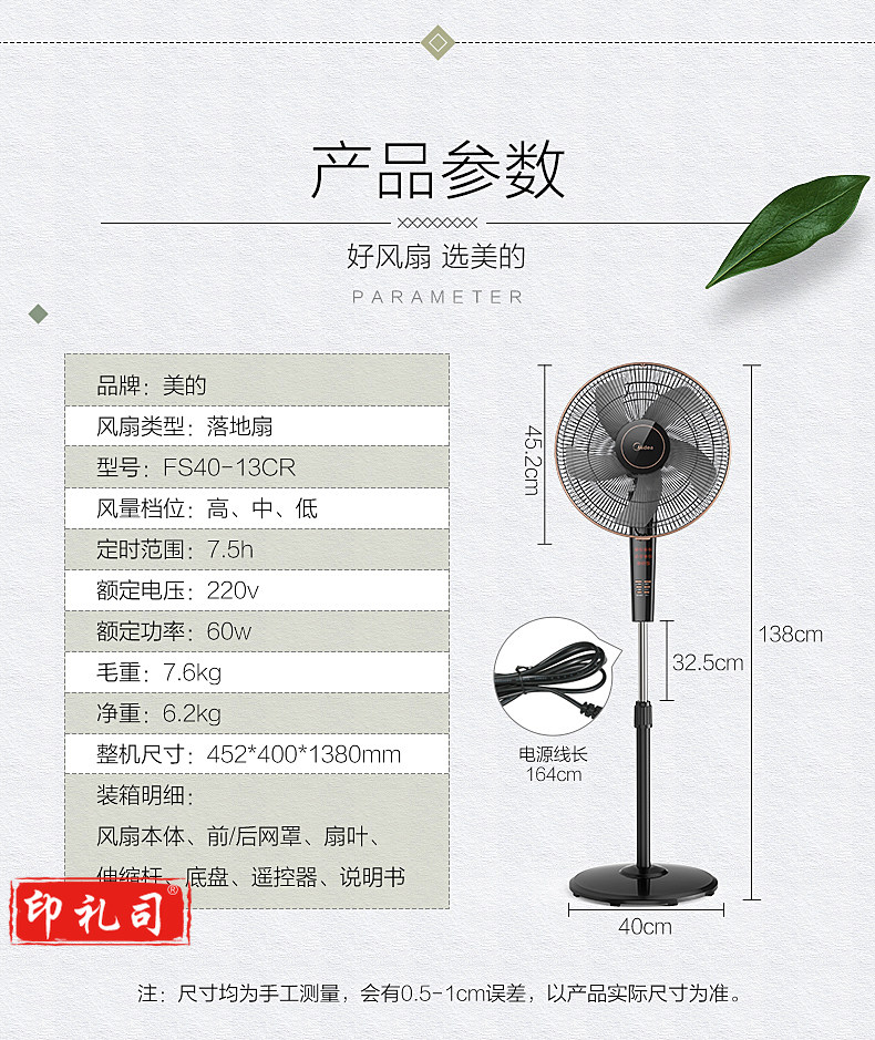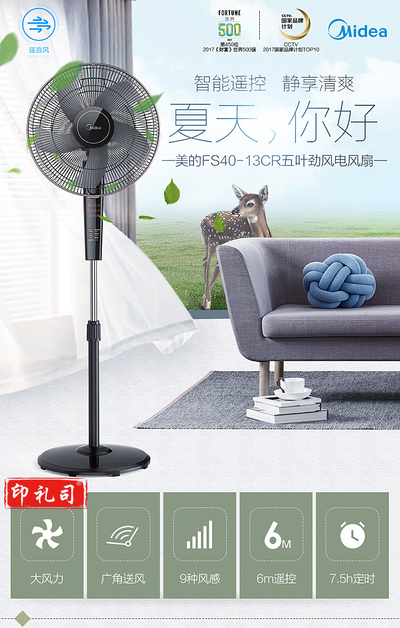美的(Midea)FS40-13CR 电风扇 遥控落地扇家用转页静音定时摇头立台式电扇