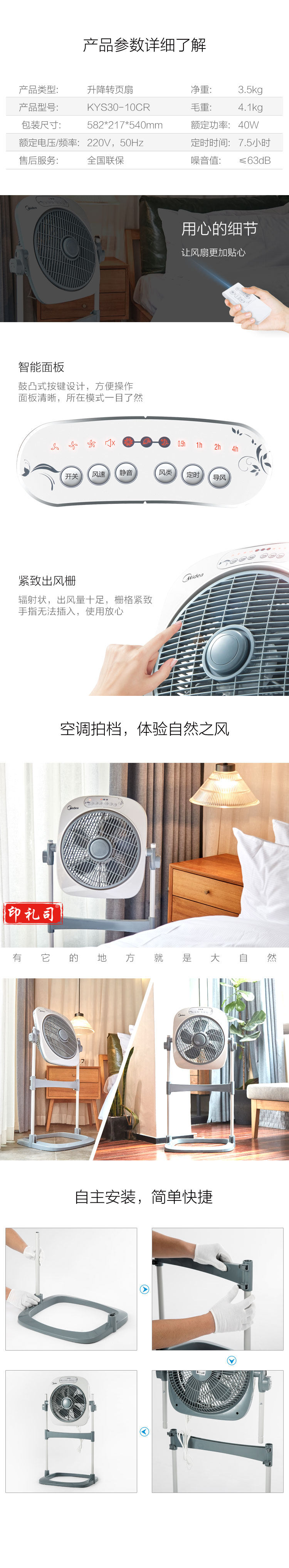 美的(Midea)KYS30-10CR 遥控升降转页扇/电风扇