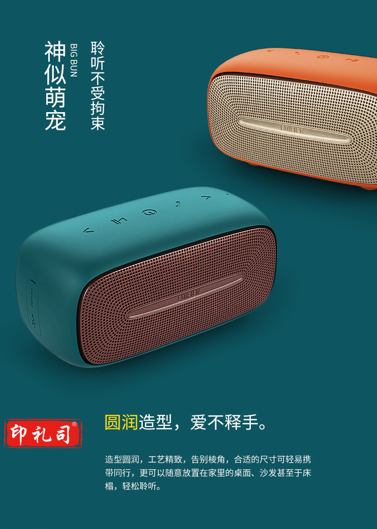 漫步者(EDIFIER)BIG BUN 迷你蓝牙立体声音响 音箱 海蓝色