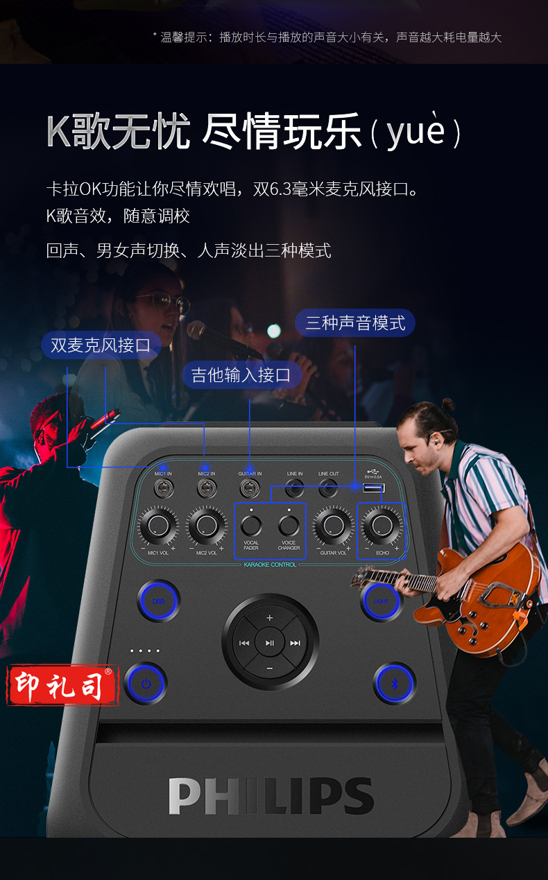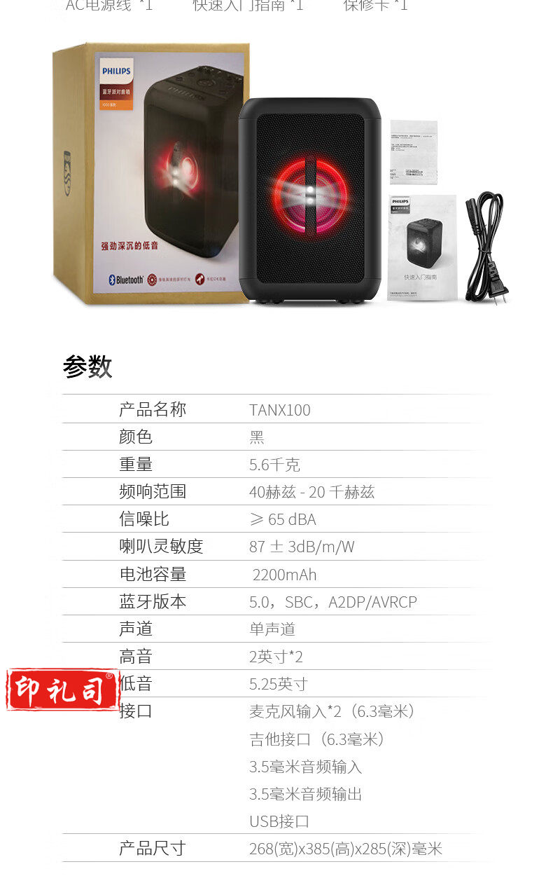 飞利浦 PHILIPS TANX100 蓝牙便携式大功率音箱
