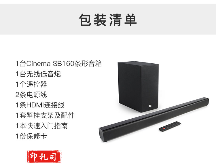 JBL Cinema SB160音响 音箱 家庭影院 电视音响 蓝牙音响 条形音响 回音壁 soundbar 无线低音炮