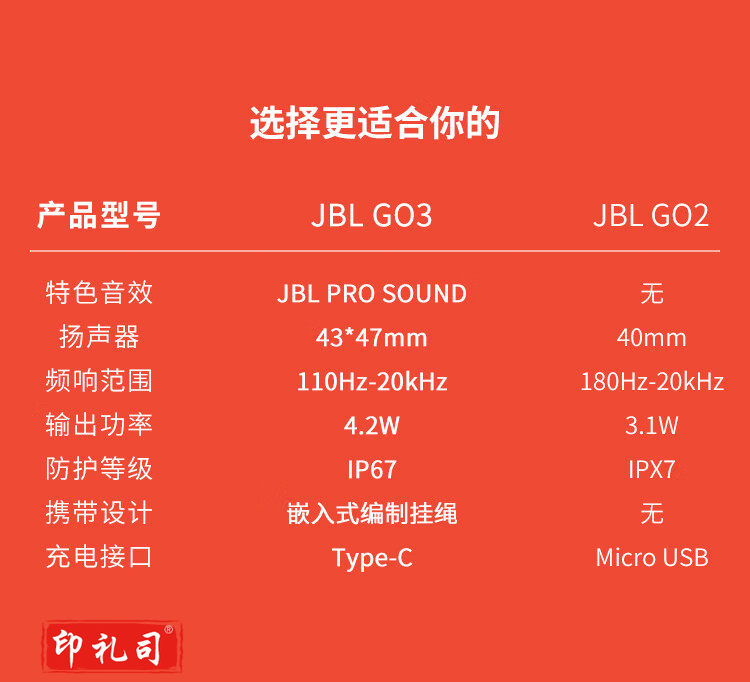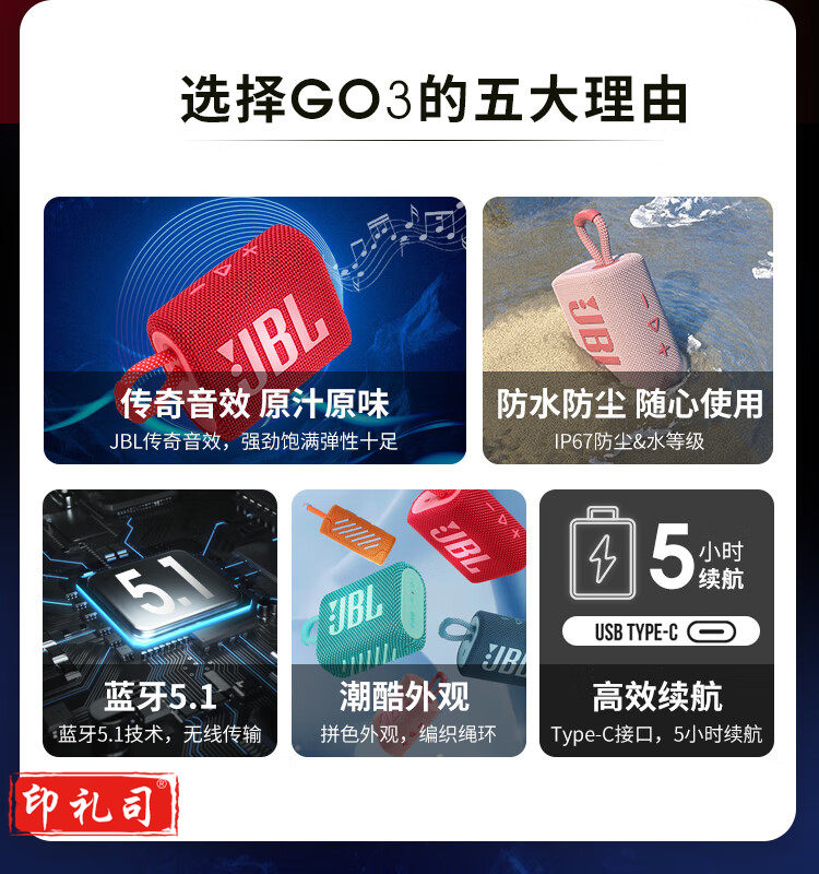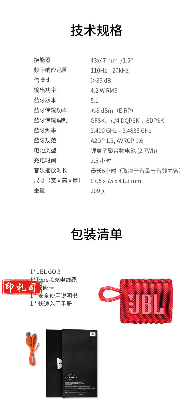 JBL GO3 音乐金砖三代 便携式蓝牙音箱 庆典红