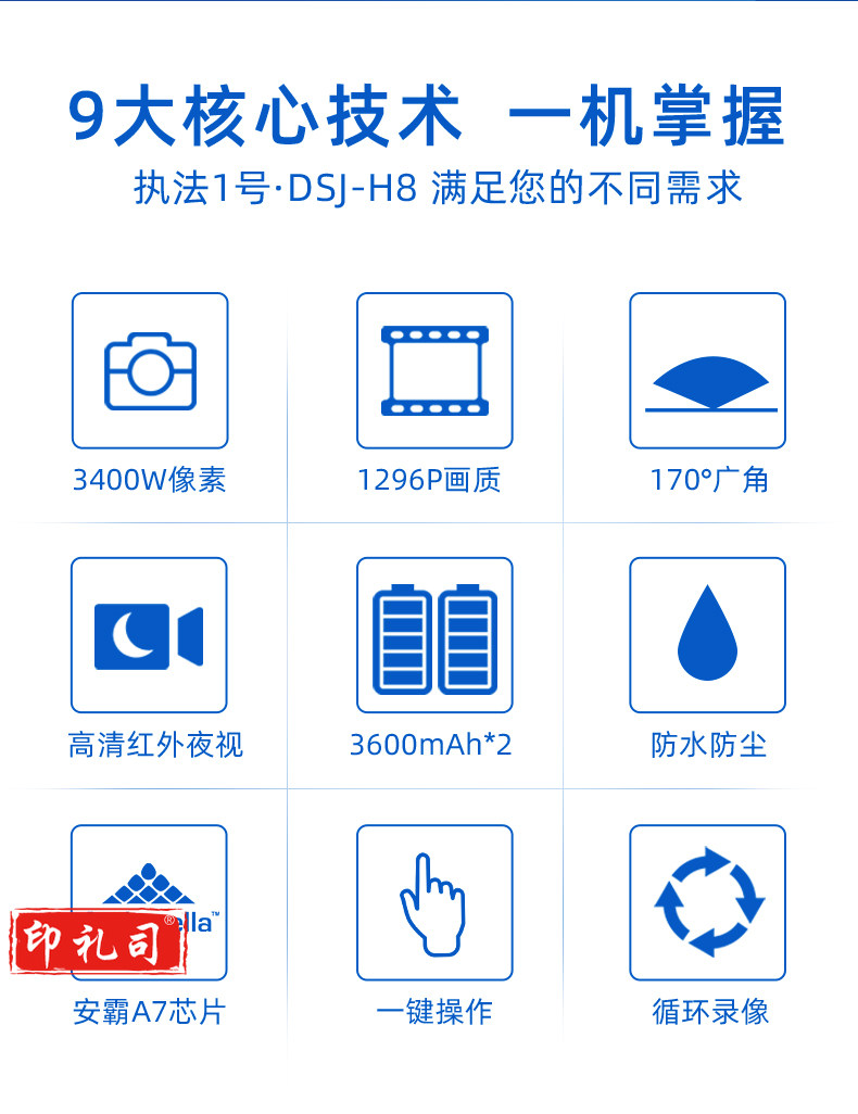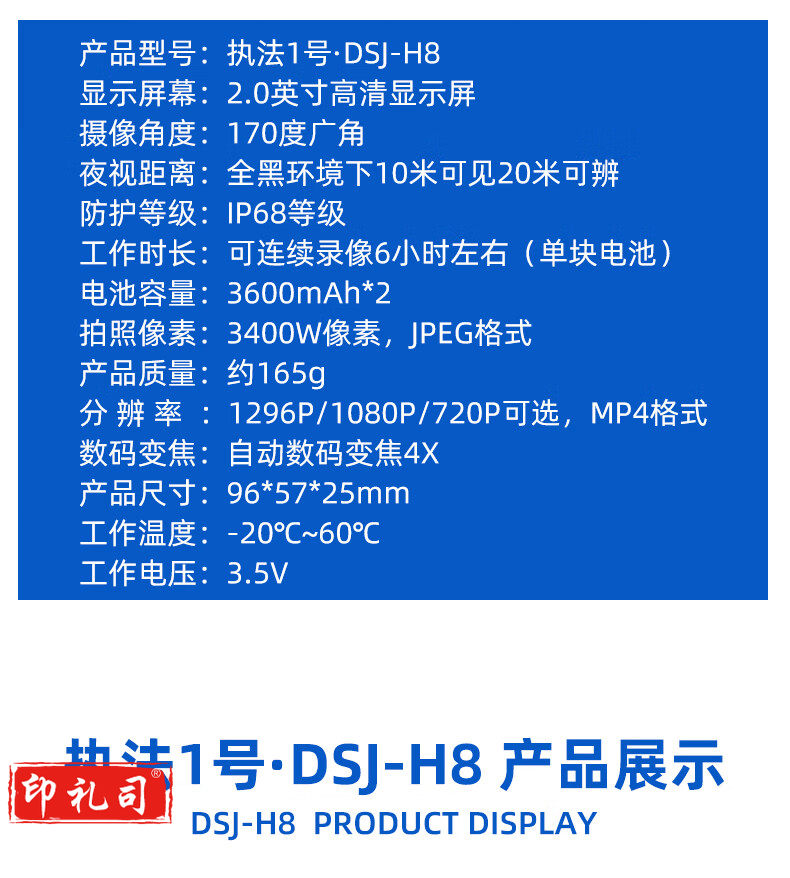 执法1号(zhifayihao)DSJ-H8 高清执法记录仪红外夜视胸前佩戴现场随身记录仪 官方标配256G